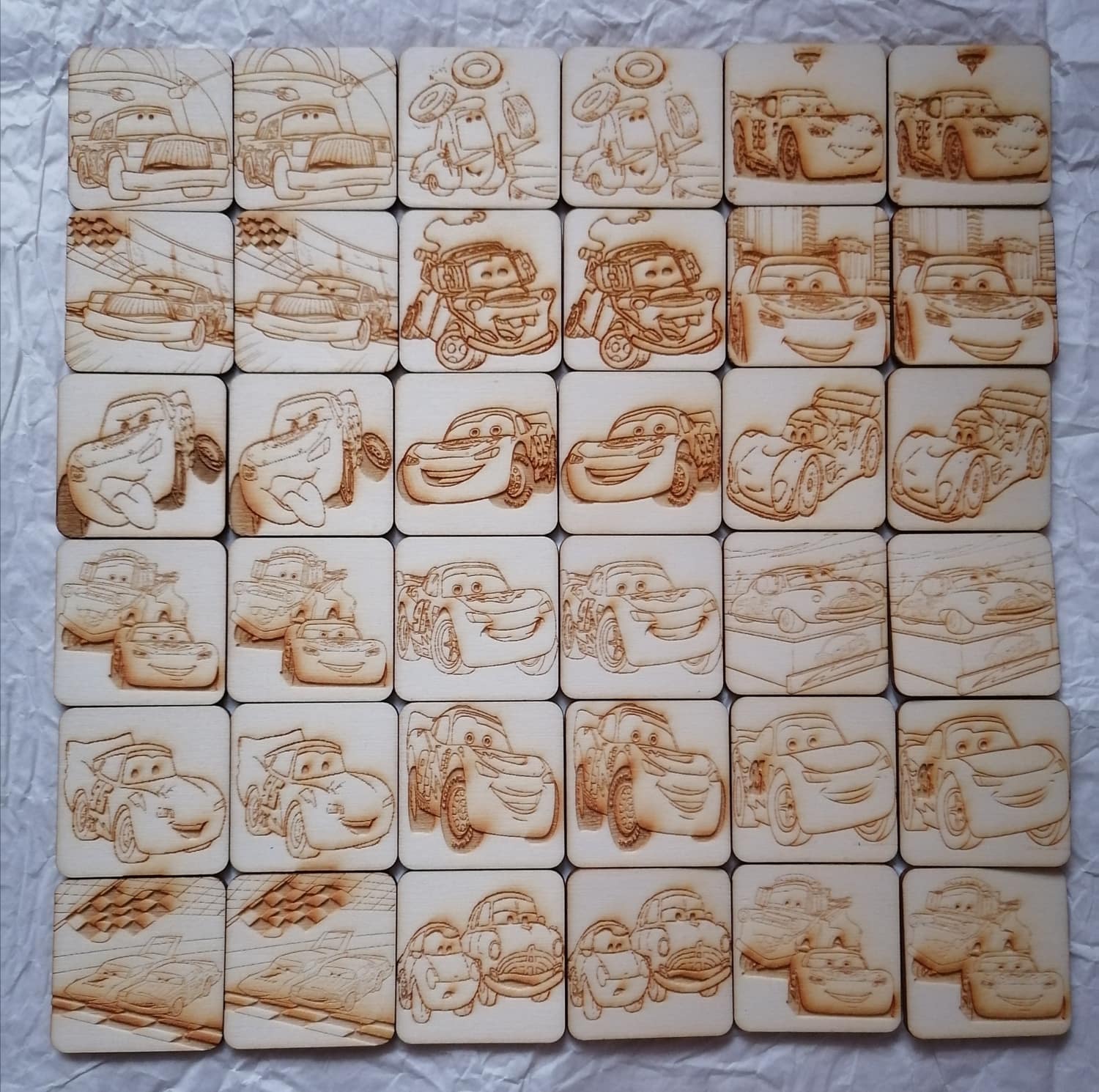 Zábavná spoločenská hra pexeso pre malých aj veľkých! Precvičte si pamäť a postreh s našimi krásnymi ilustráciami. Drevené pexeso obsahuje 36 ks drevených dielikov (18 párov). Je vyrobené z drevenej preglejky o hrúbke 3mm, do ktorej sú vygravírované postavičky. Rozmer hracej kocky je 5x5cm, rohy sú zaoblené aby neprišlo úrazu pri hraní, je lakované s lakom, ktorý má certfikáciu pre styk s detmi.
