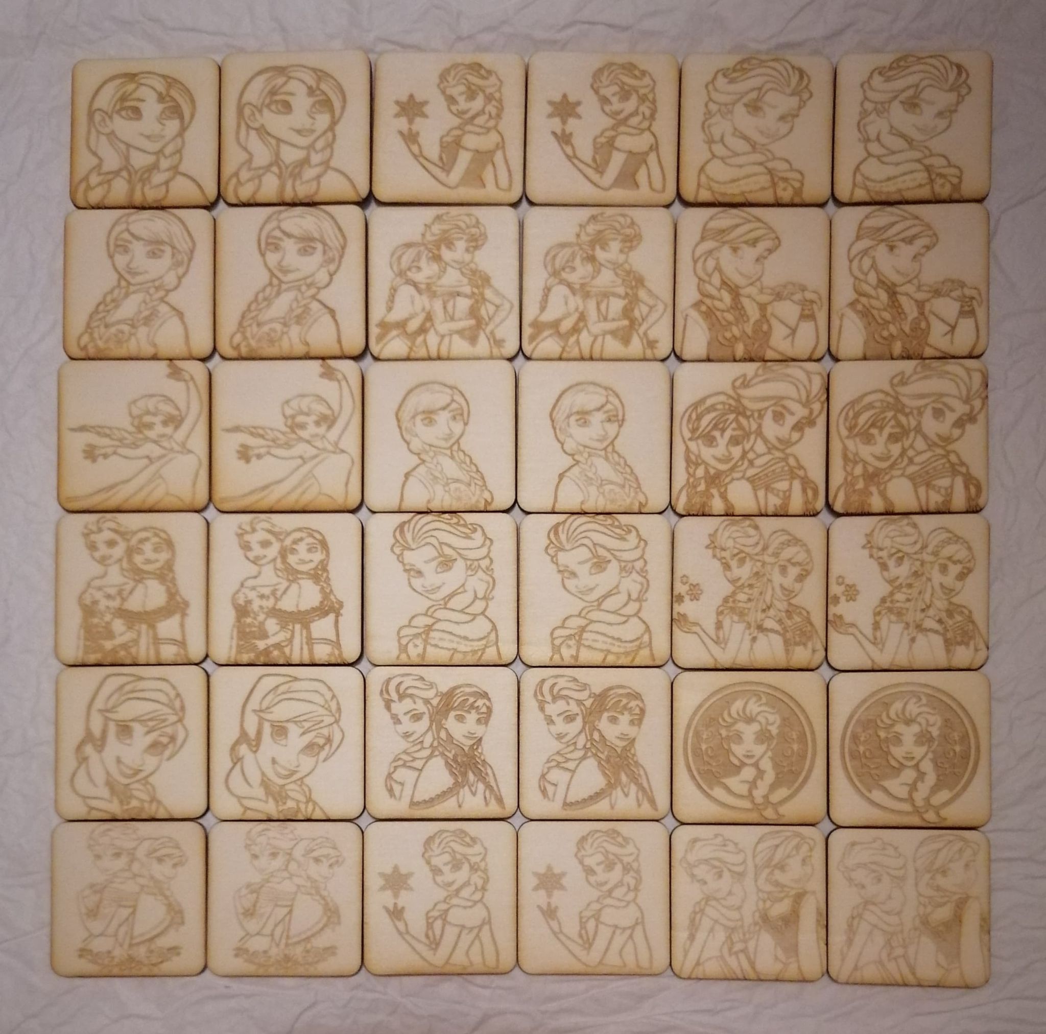 Zábavná spoločenská hra pexeso pre malých aj veľkých! Precvičte si pamäť a postreh s našimi krásnymi ilustráciami. Drevené pexeso obsahuje 36 ks drevených dielikov (18 párov). Je vyrobené z drevenej preglejky o hrúbke 3mm, do ktorej sú vygravírované postavičky. Rozmer hracej kocky je 5x5cm, rohy sú zaoblené aby neprišlo úrazu pri hraní, je lakované s lakom, ktorý má certfikáciu pre styk s detmi.