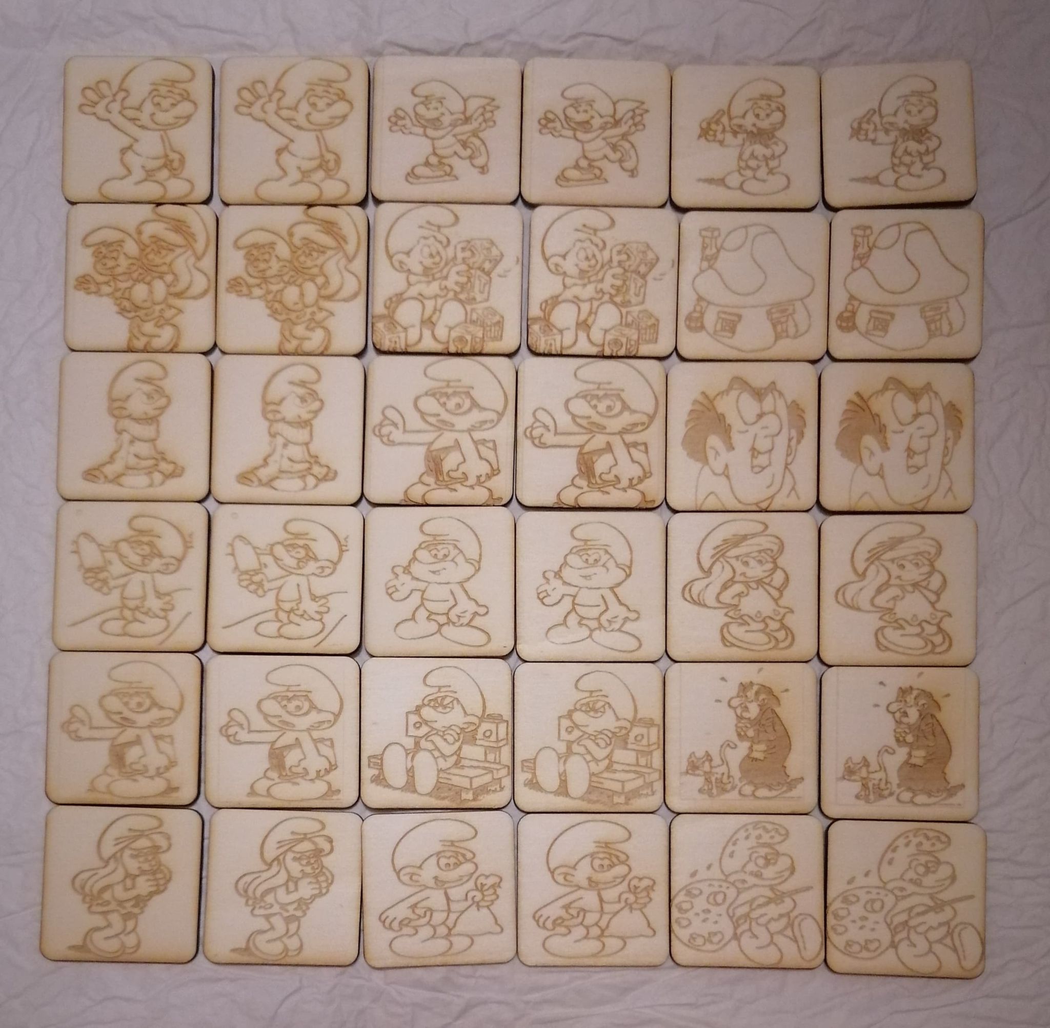 Zábavná spoločenská hra pexeso pre malých aj veľkých! Precvičte si pamäť a postreh s našimi krásnymi ilustráciami. Drevené pexeso obsahuje 36 ks drevených dielikov (18 párov). Je vyrobené z drevenej preglejky o hrúbke 3mm, do ktorej sú vygravírované postavičky. Rozmer hracej kocky je 5x5cm, rohy sú zaoblené aby neprišlo úrazu pri hraní, je lakované s lakom, ktorý má certfikáciu pre styk s detmi.