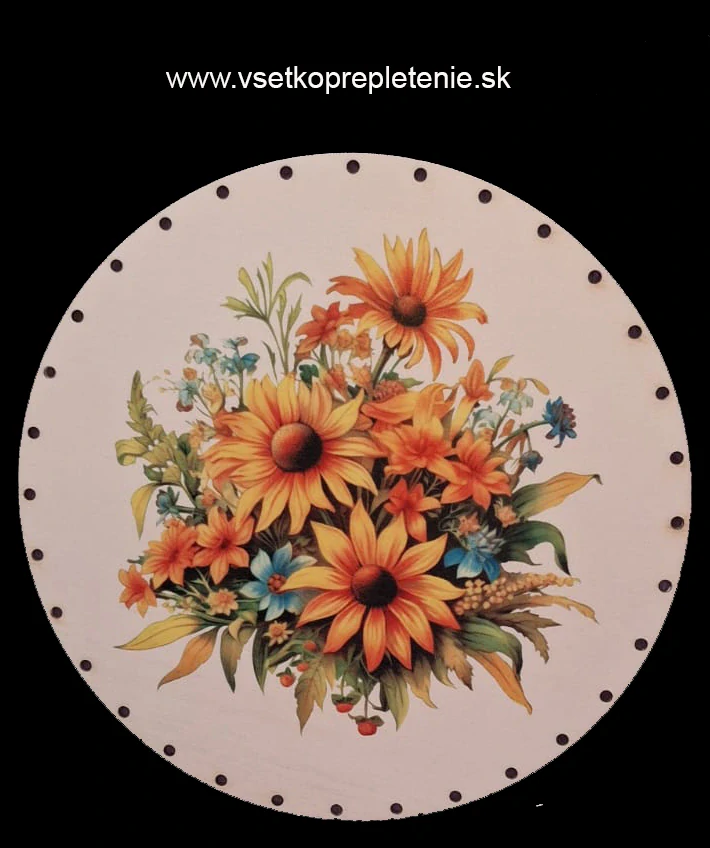 Preglejka je potlačená UV tlačou, ktorá vytvorí na povrchu jemný film keramického povlaku. Potlač je veľmi trvácna a oteruvzdorná. Na zvýšenie odolnosti je možnosť základ venca natrieť lakom. Môžete si poslať aj svoj vlastný návrh (rodinné foto) a vytlačíme ho na požadovaný formát preglejky. Uvedený obrázok vieme zrealizovať aj na dná na pedig alebo na háčkovanie. Do poznámky treba uviesť typ dna, čo si prosíte vyrobiť.