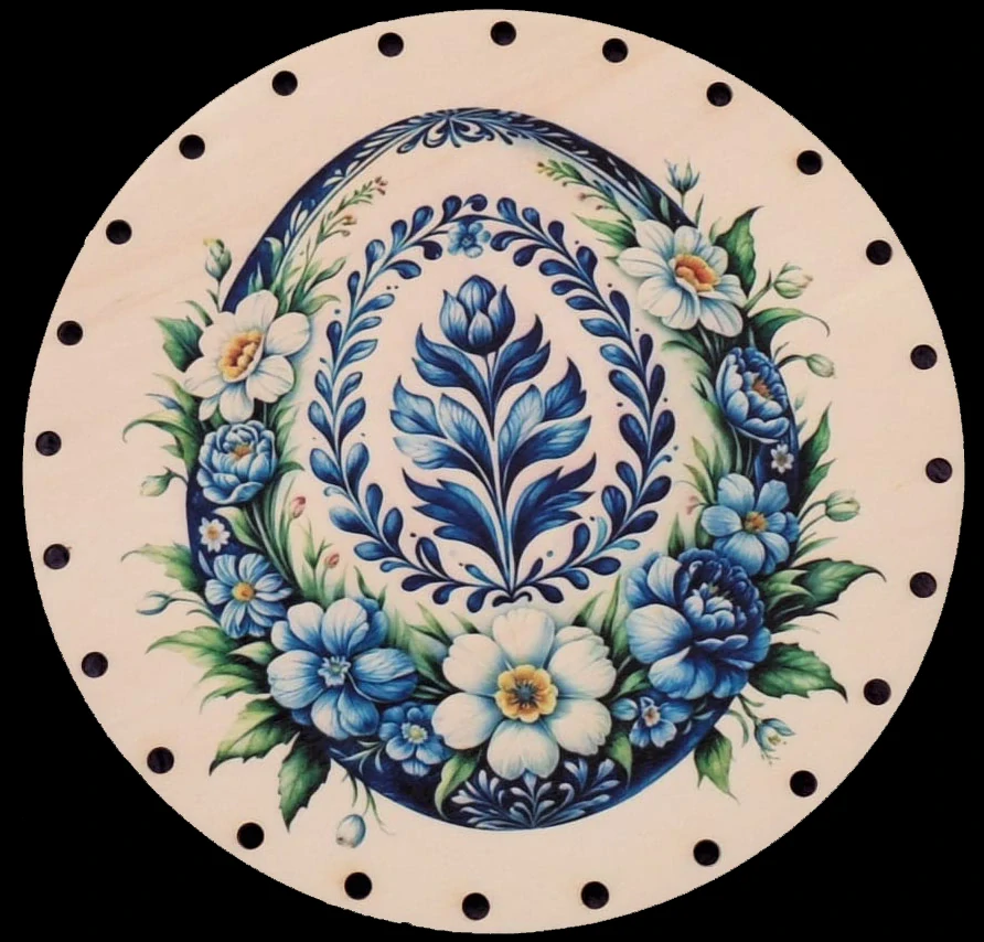 Preglejka je potlačená UV tlačou, ktorá vytvorí na povrchu jemný film keramického povlaku. Potlač je veľmi trvácna a oteruvzdorná. Na zvýšenie odolnosti je možnosť základ venca natrieť lakom. Môžete si poslať aj svoj vlastný návrh (rodinné foto) a vytlačíme ho na požadovaný formát preglejky. Uvedený obrázok vieme zrealizovať aj na dná na pedig alebo na háčkovanie. Do poznámky treba uviesť typ dna, čo si prosíte vyrobiť.