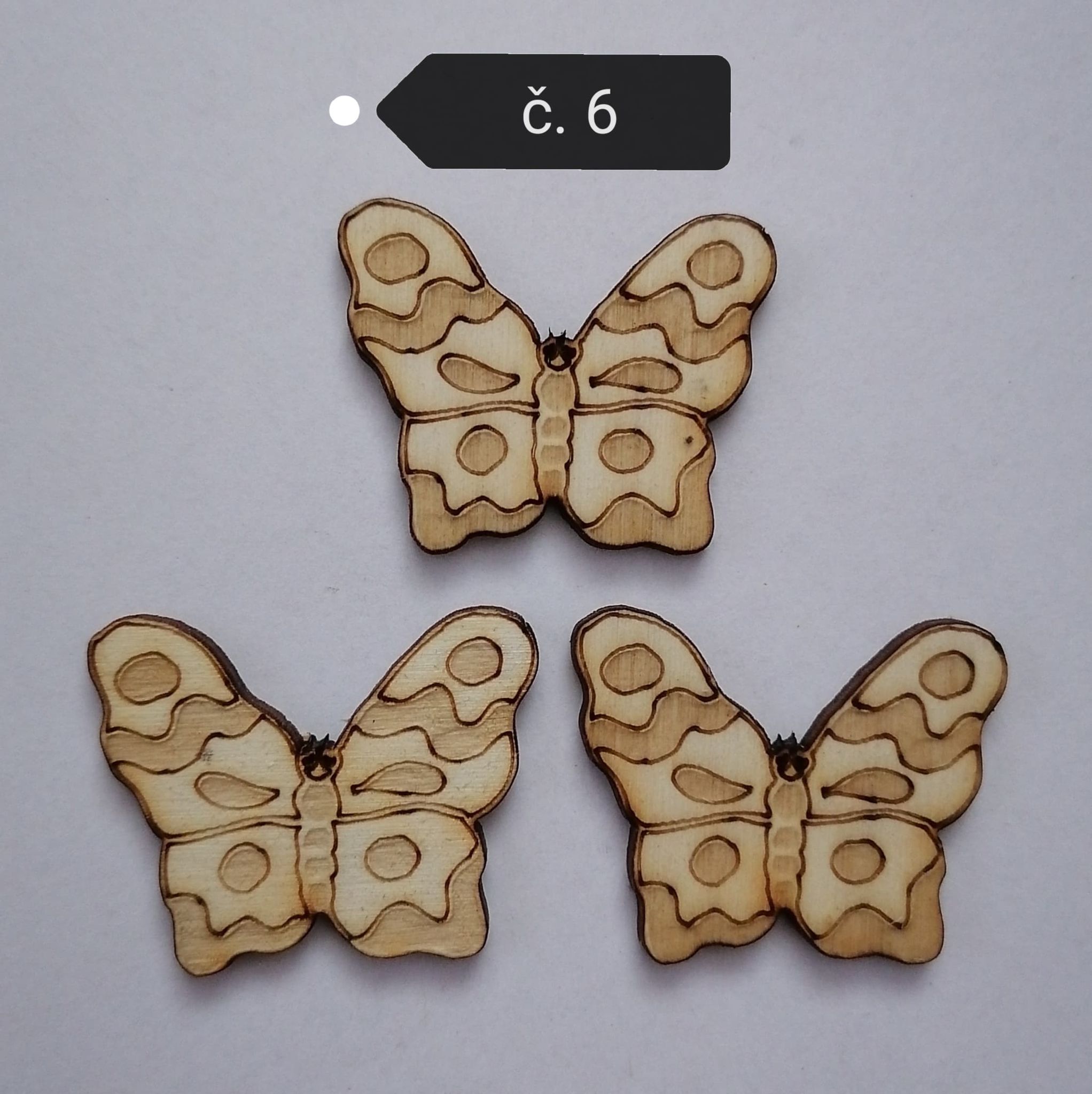 Drevený motýľ6 32x28mmSkladom 30 bal.0,15 €/ bal.