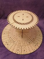 Forma na pletenie krytu na stromček 81,5x35x27cm(47cm). Forma je robená na pletenie 9 veľkostí krytu na stromček alebo na pletenie krytu na nočnú lampu. Na základnej doske sú vypálené dierky na osnovné ruličky v 9 radoch, najväčší kruh je 79,5cm, najmenší kruh je 40cm. Horných kruhov je 5 najmenší má 27cm a najväčší kruh je 47cm.