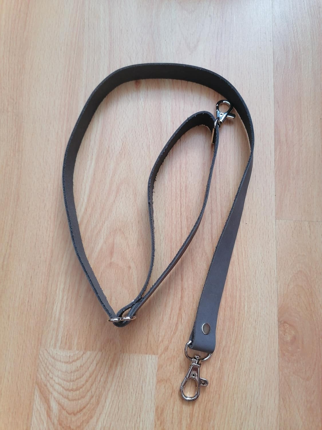 - Kožená rúčka na kabelky nastaviteľná 105cm šedá - niklová karabína