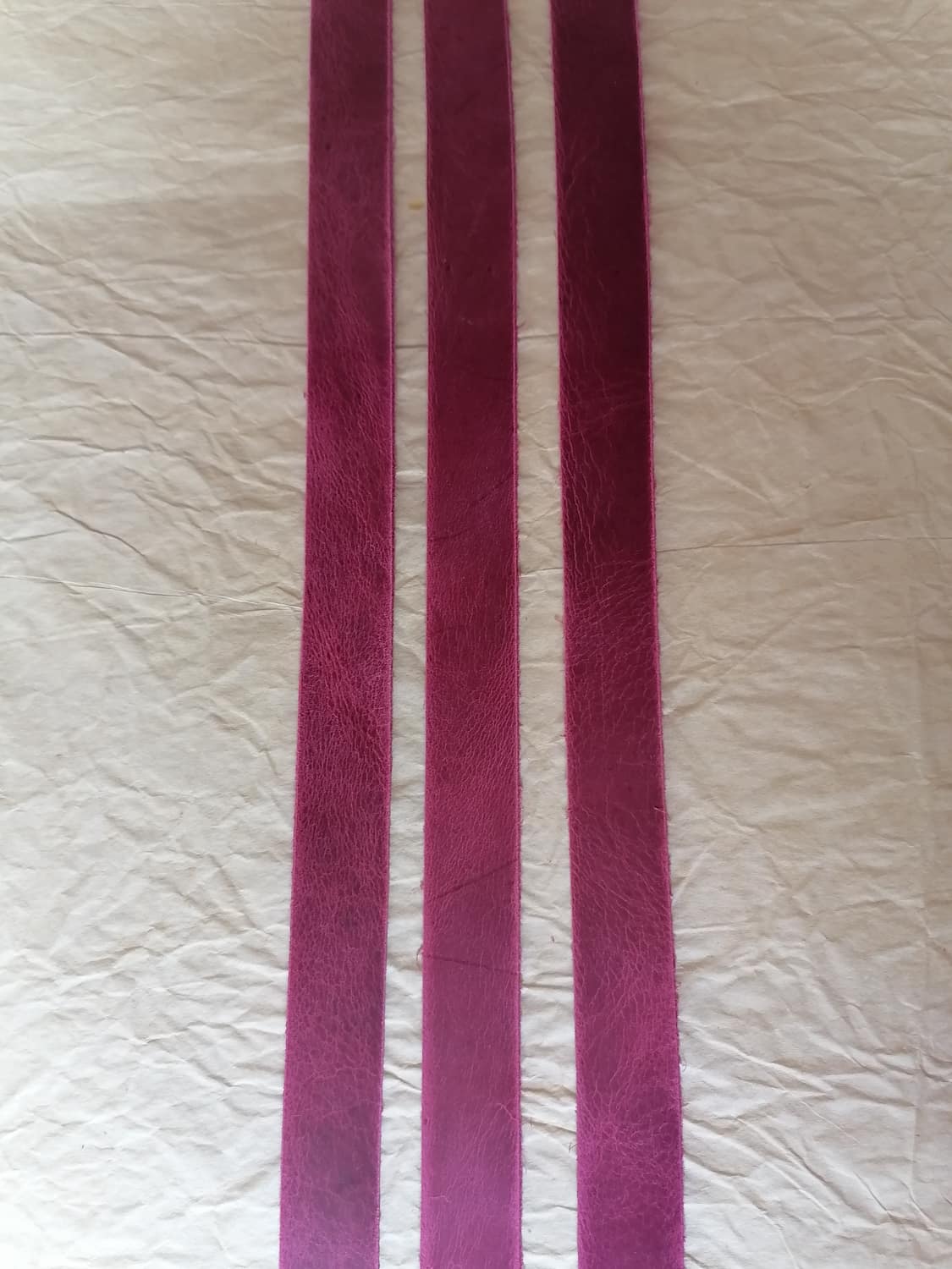 Dĺžka pásu sa môže líšiť, nakoľko pásy sa režú z celej kože, ktorá má nepravidelný tvar a veľkosť.