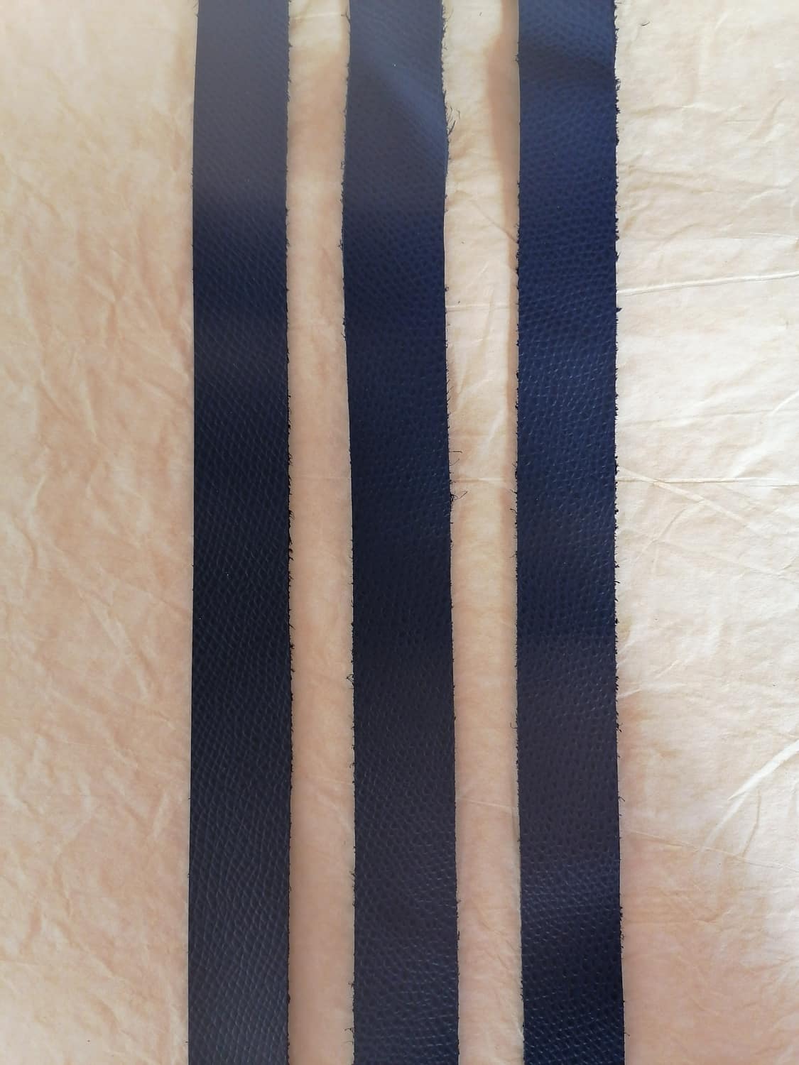 Dĺžka pásu sa môže líšiť, nakoľko pásy sa režú z celej kože, ktorá má nepravidelný tvar a veľkosť.