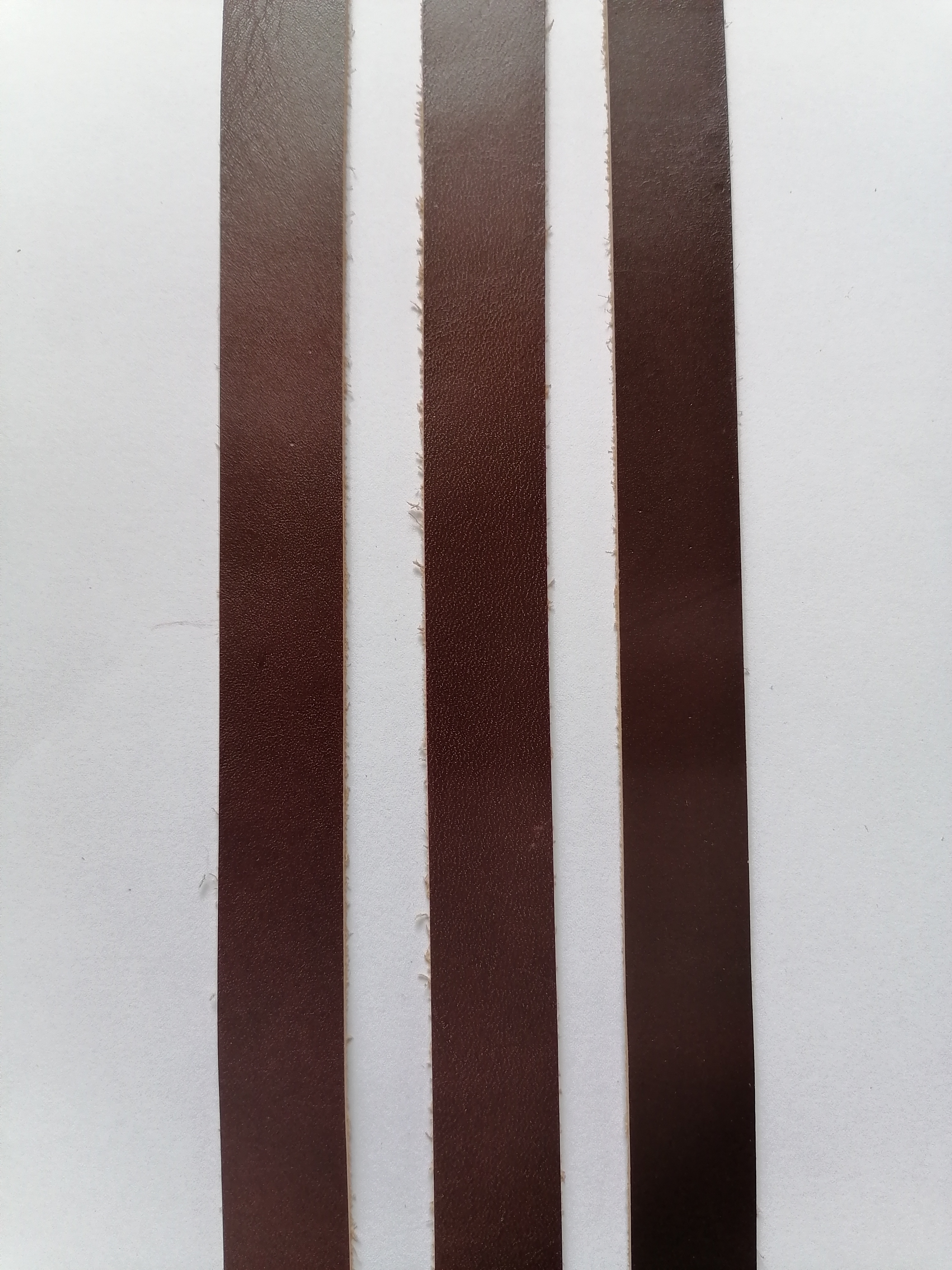Dĺžka pásu sa môže líšiť, nakoľko pásy sa režú z celej kože, ktorá má nepravidelný tvar a veľkosť.