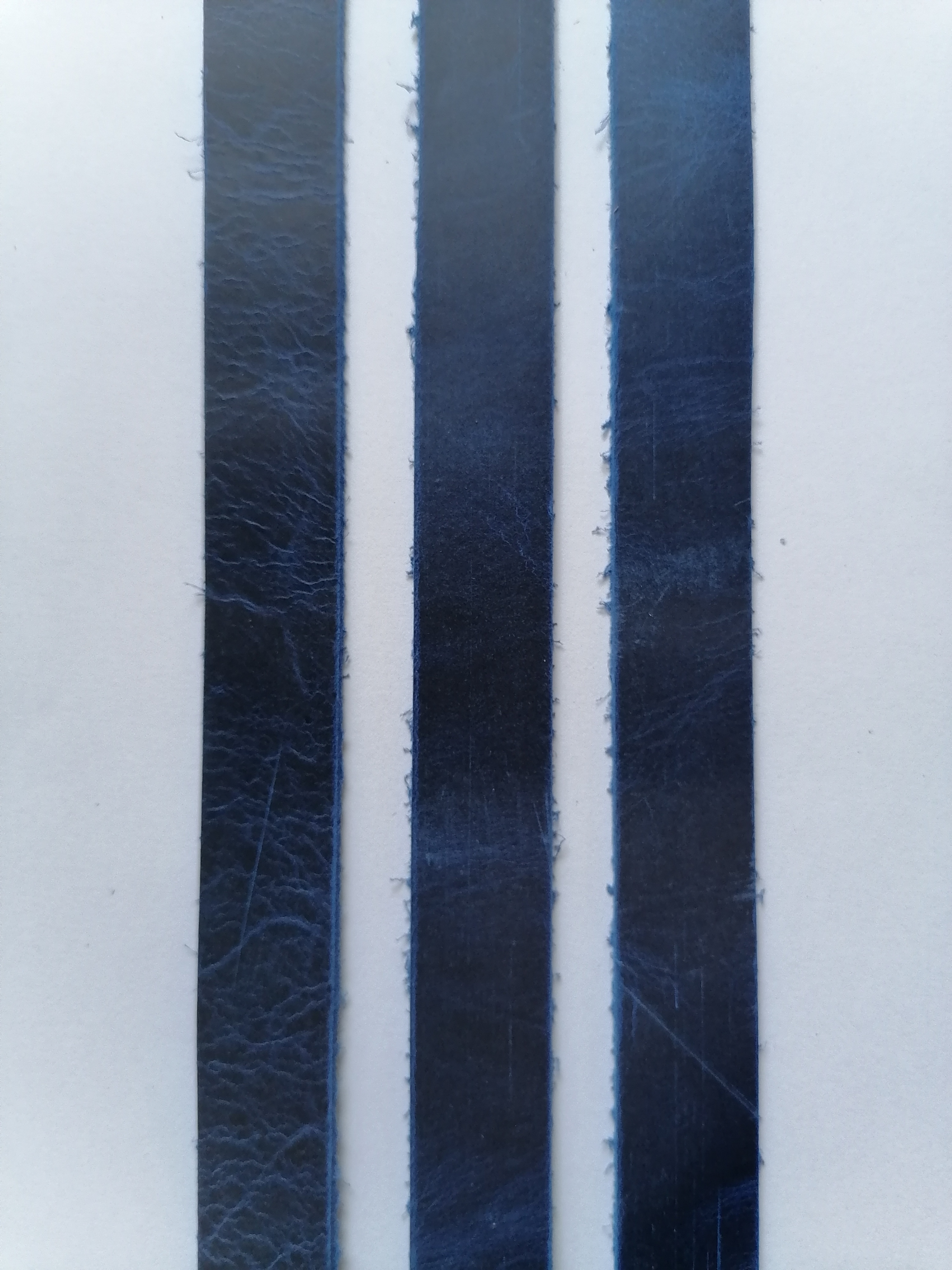 Dĺžka pásu sa môže líšiť, nakoľko pásy sa režú z celej kože, ktorá má nepravidelný tvar a veľkosť.