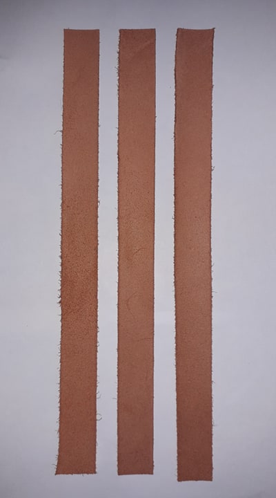 Dĺžka pásu sa môže líšiť, nakoľko pásy sa režú z celej kože, ktorá má nepravidelný tvar a veľkosť.