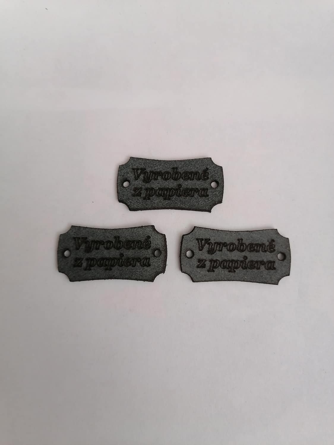 Kožený štítok 35x18 vyrobené z papiera - šedýSkladom 98 ks0,30 €/ ks