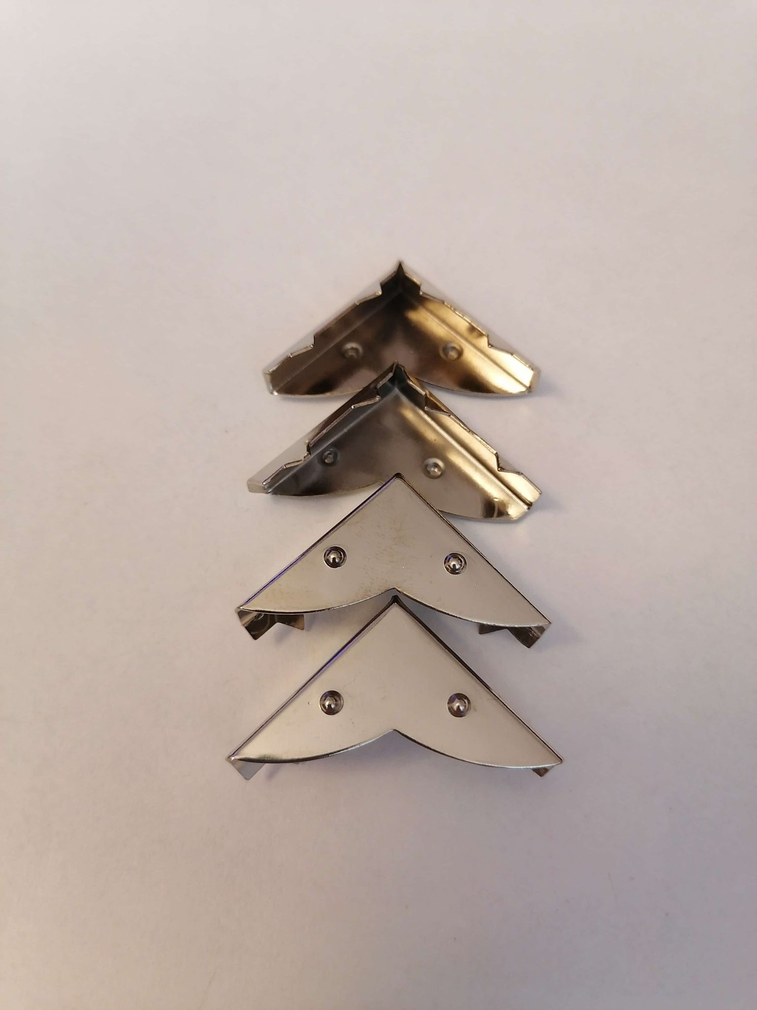 Niklový kovový roh ozdobný 26X26X5,5mmSkladom 18 bal.1,20 €/ bal.