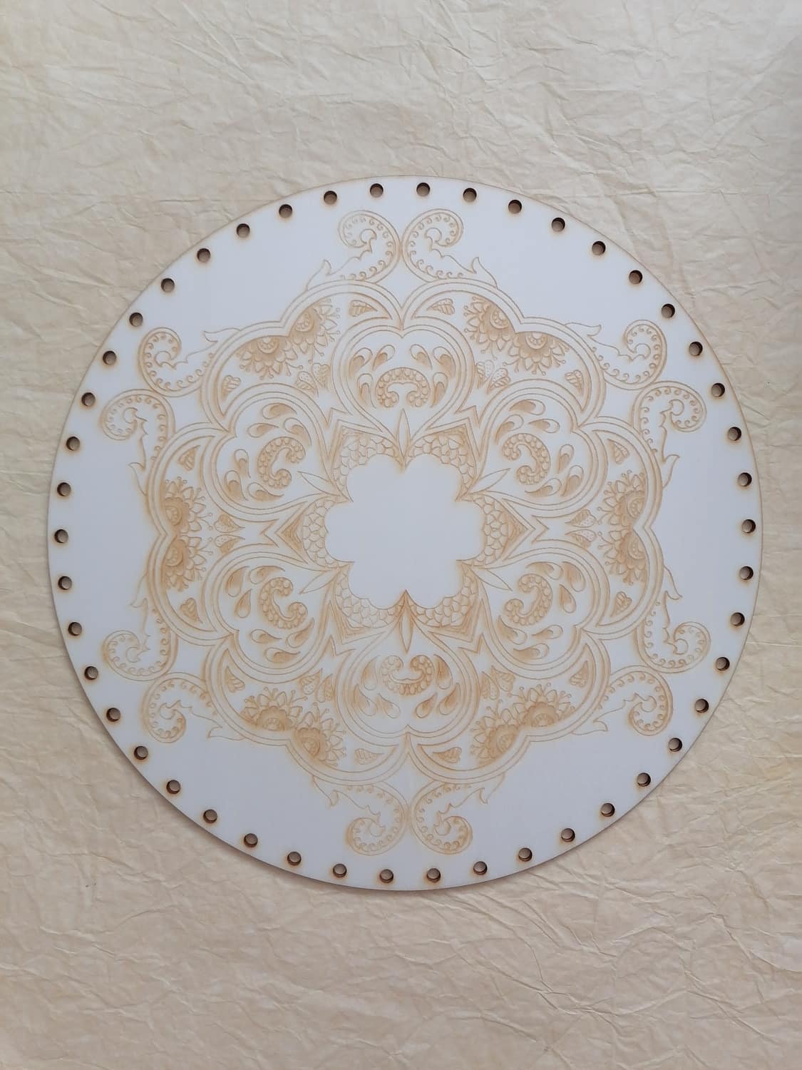 - Preglejkové dno gravírované na opletanie 3mm Mandala12 - Ø 20cm