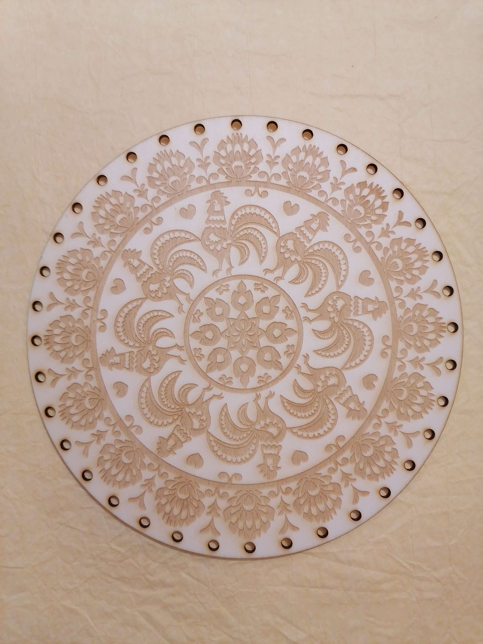Preglejkové dno gravírované na opletanie 4mm Ľudový motív6 - Ø 30cm
