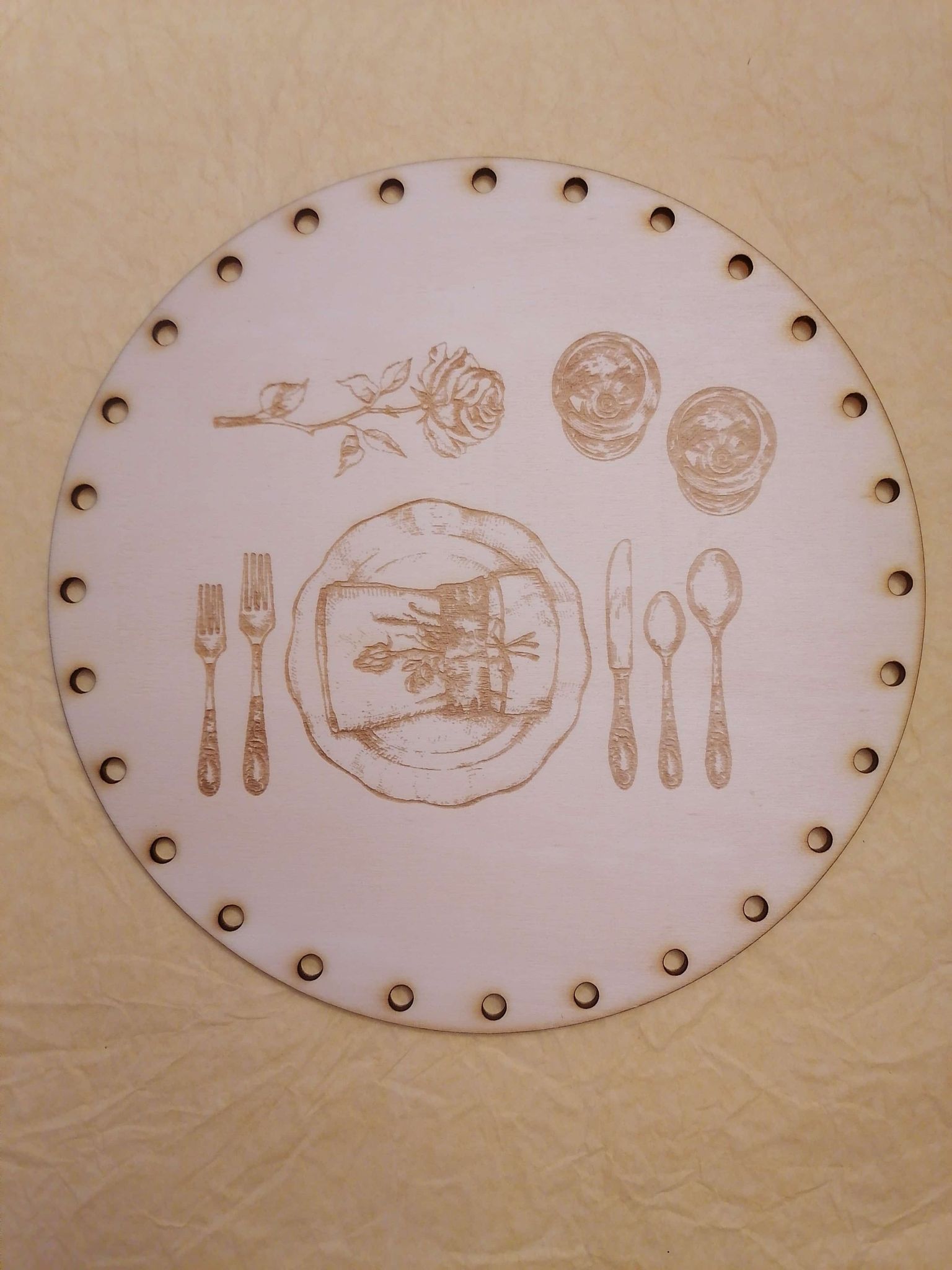 Preglejkové dno gravírované na opletanie 4mm Príbor - Ø 20cm
