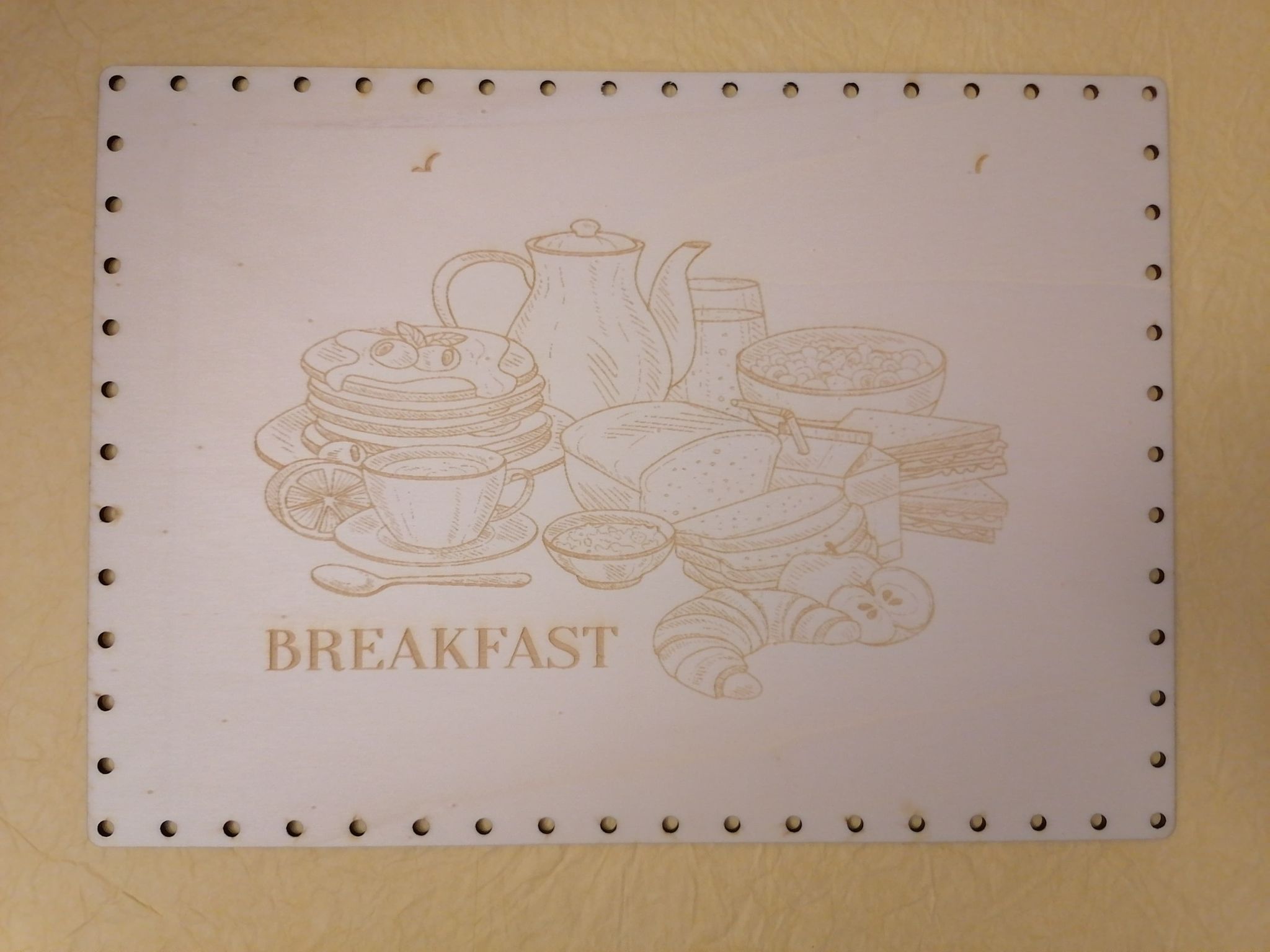 - Preglejkové dno na opletanie gravírované obdĺžnik 3mm - 35x25cm Raňajky