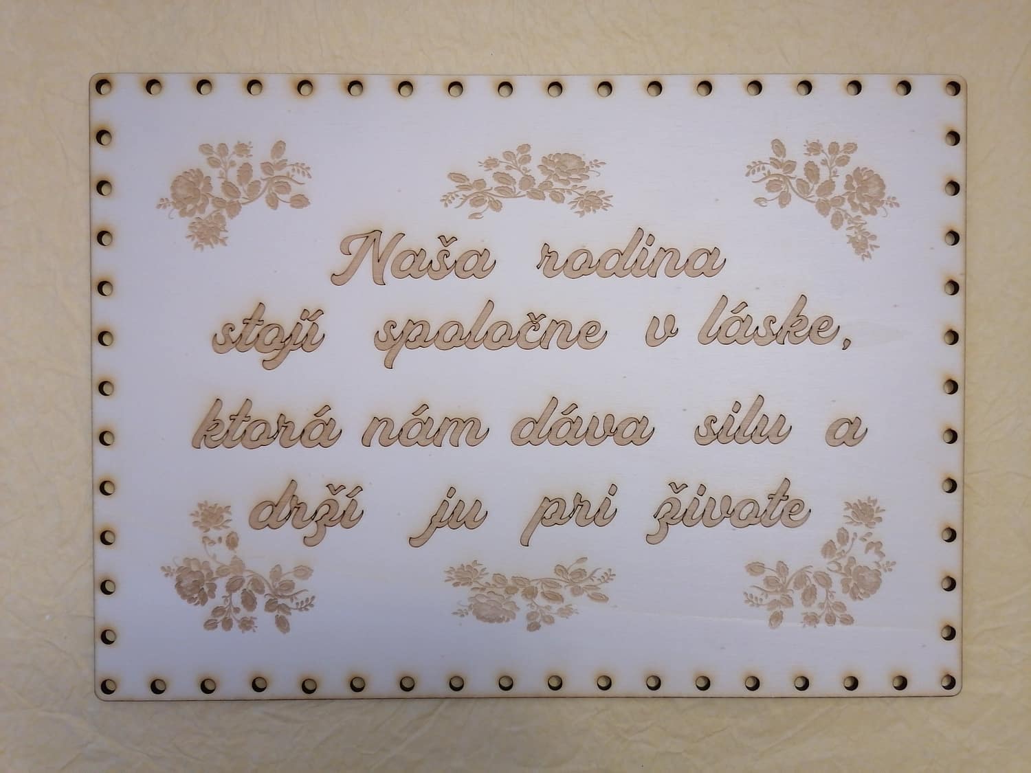 - Preglejkové dno na opletanie gravírované obdĺžnik 4mm - 25x15cm Naša rodina