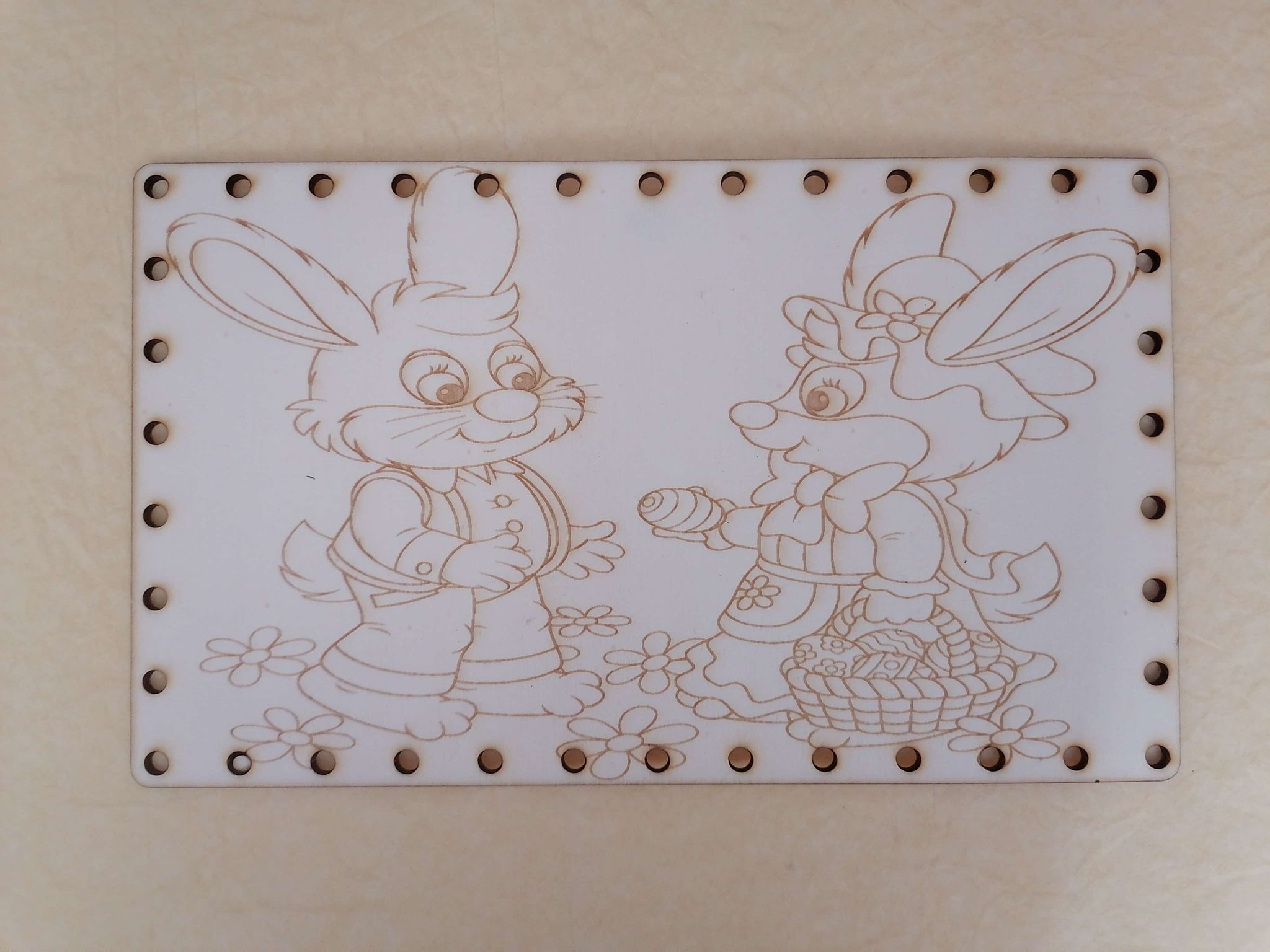 - Preglejkové dno na opletanie gravírované obdĺžnik 4mm - 25x15cm Zajko a zajačica