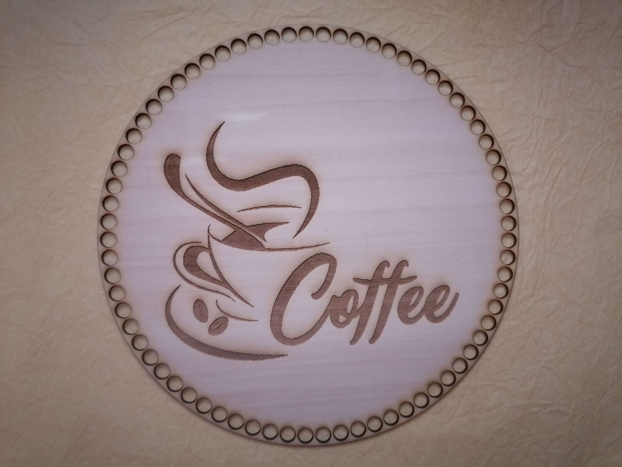 Preglejkový kruh gravírovaný na háčkovanie 3mm - Ø 26cm Káva 2