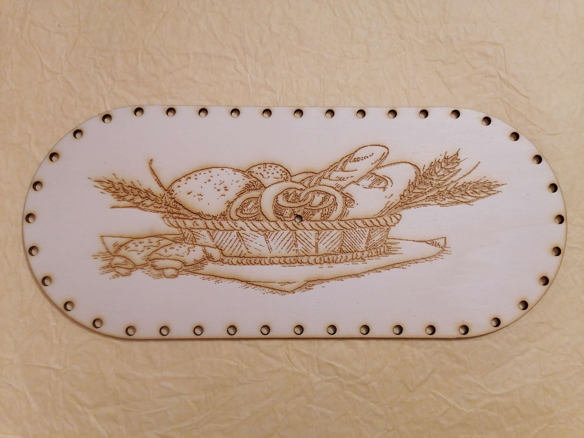 - Preglejkový poklop na chlebník oválny Kôš s pečivom 3mm - 33,5x14,5cm ( na knopku)