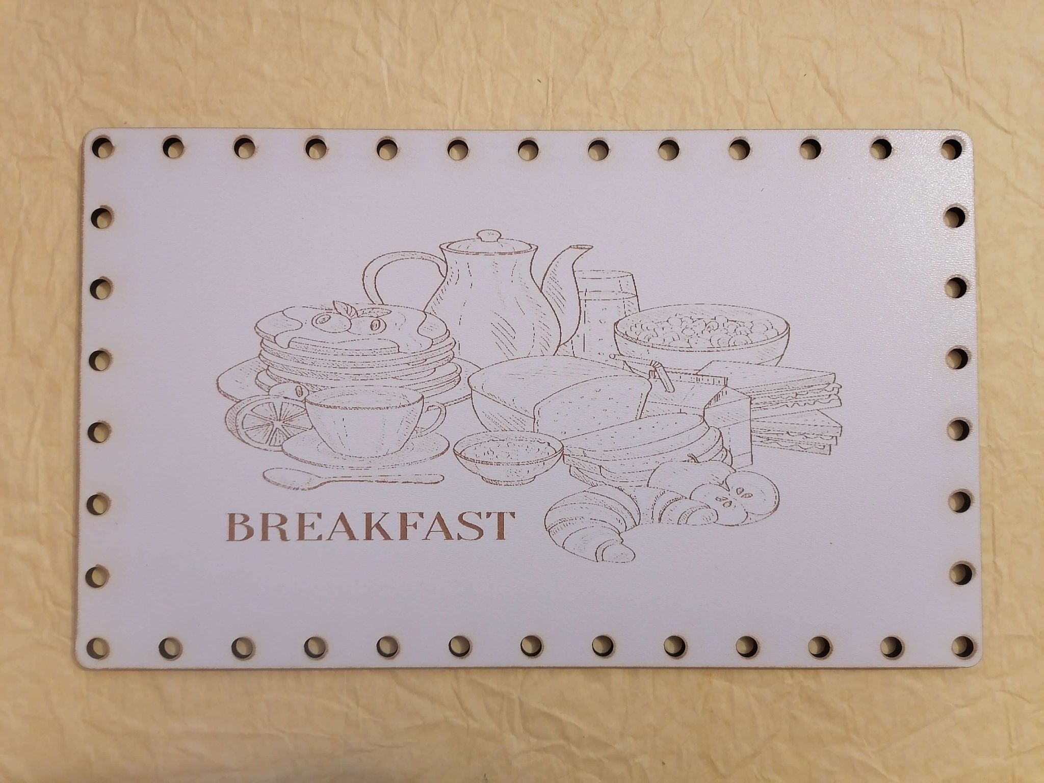 Sololitové dno obdĺžnik biely gravírovaný Raňajky - 25x15cm