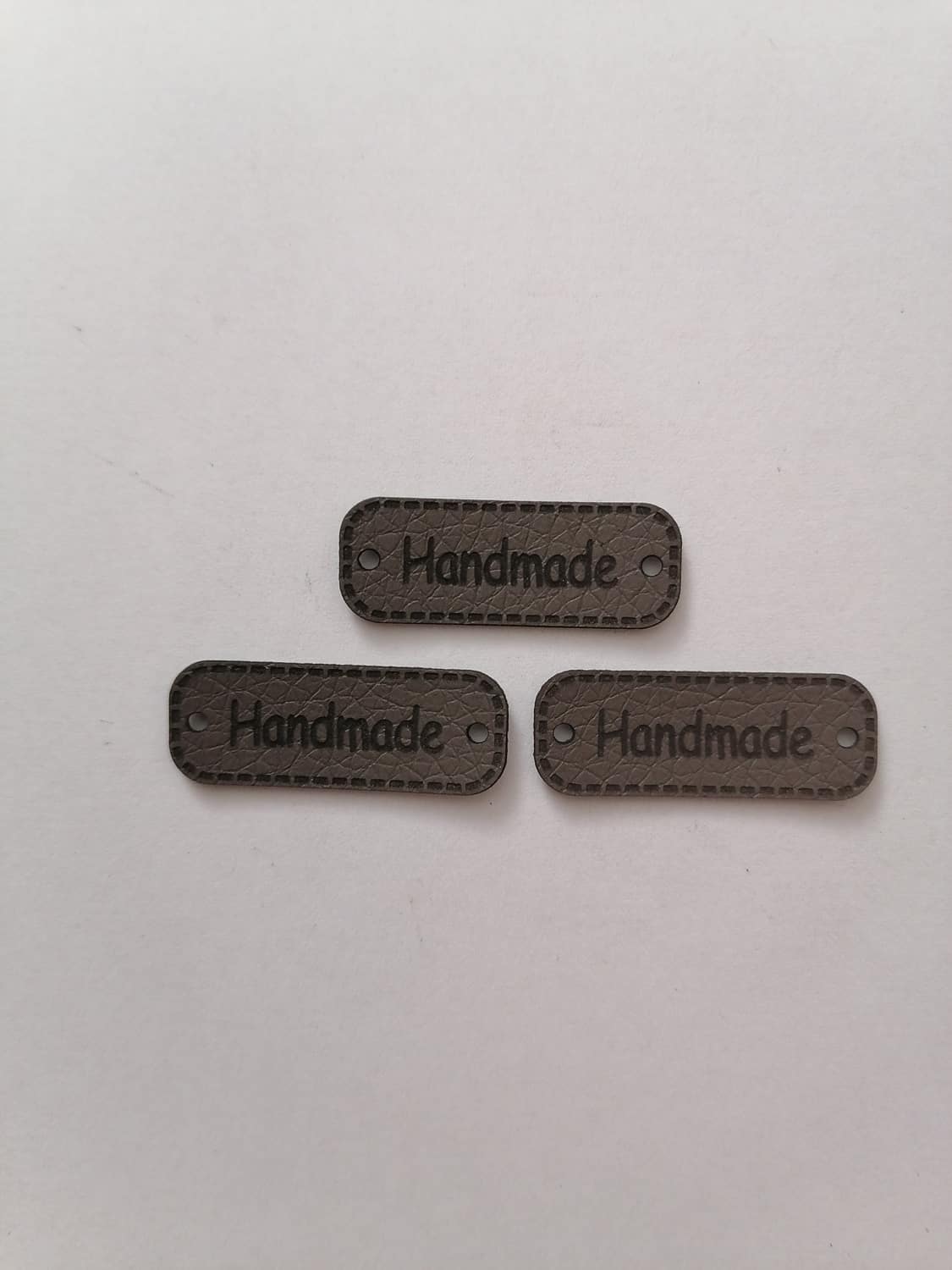 Štítok Ekokoža 3x1cm Handmade - šedýSkladom 37 ks0,30 €/ ks