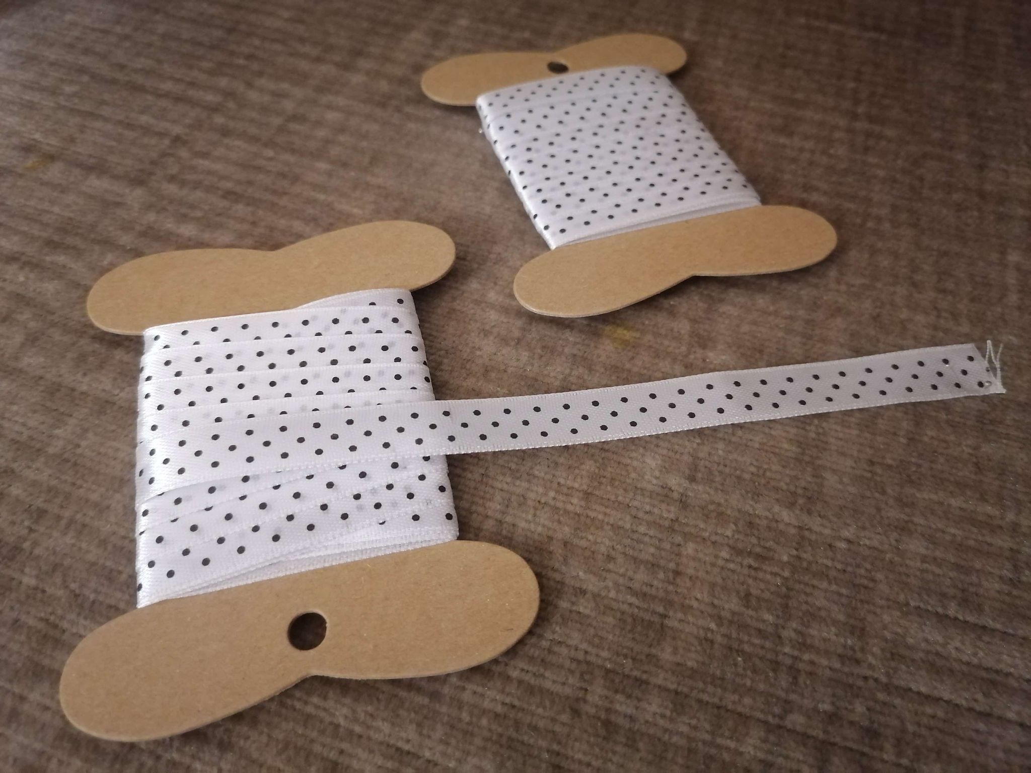 Stuha saténová s bodkami 12mm - biela s tromi bodkamiSkladom 15 ks0,80 €/ ks