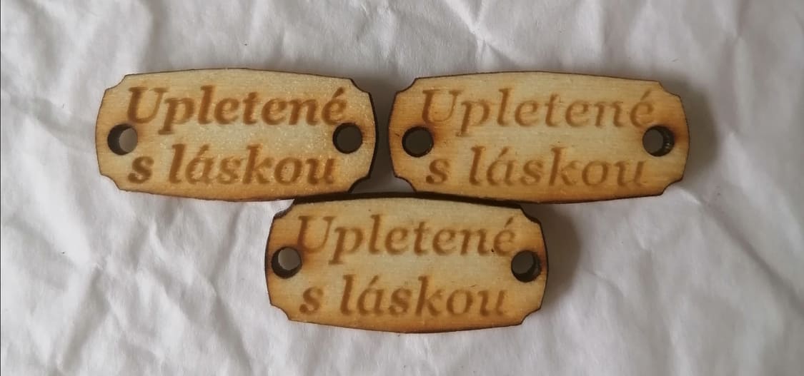Tabuľka Upletené s láskou 2,5x1,2cmSkladom 220 ks0,15 €/ ks
