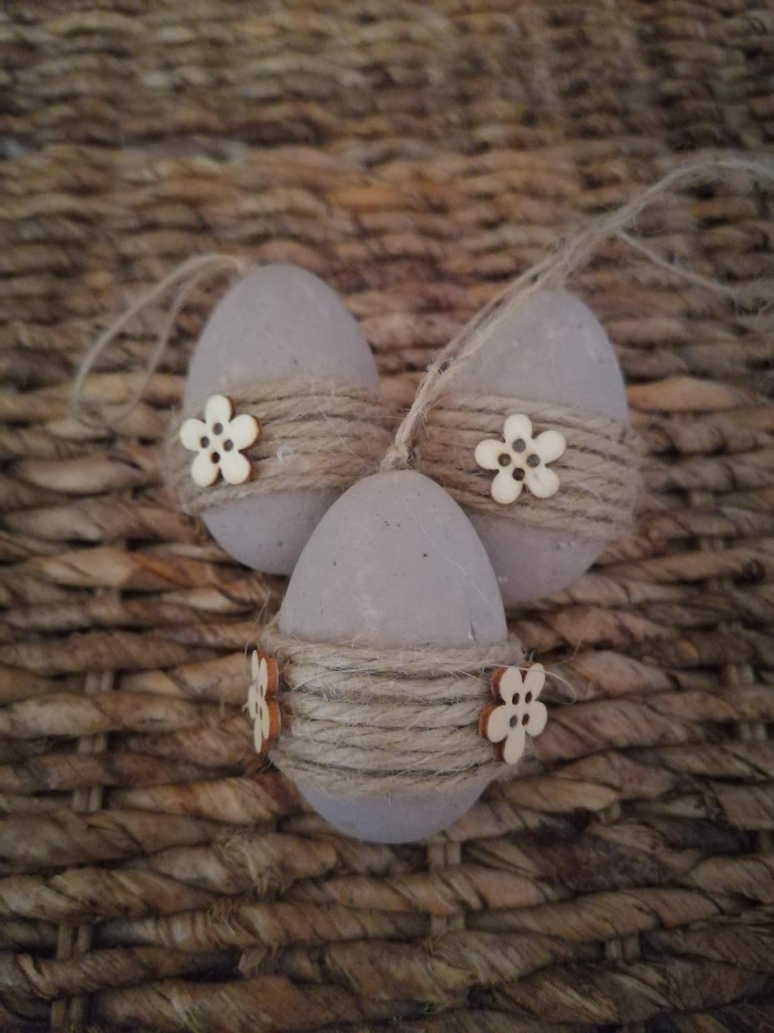 Polystyrénové vajíčko s vešiakom. Maľované a zdobené. Výška vajíčka je 6 cm. Cena je za 1ks.