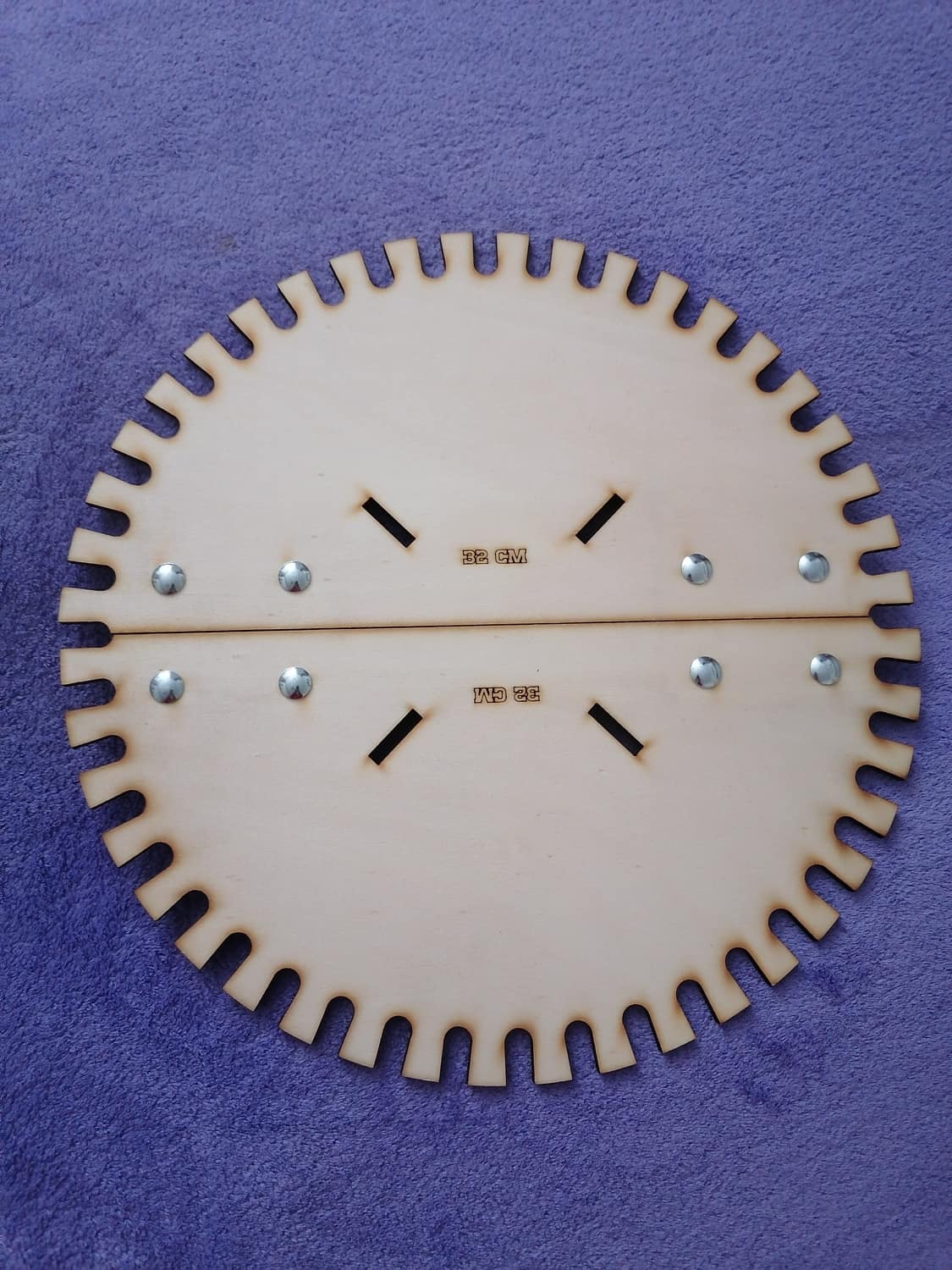 Výmenný kruh 47cm na formu na pletenie krytu na stromček, sa veľmi ľahko a jednoducho vymiena. Stačí uvolniť štyri kolíčky a vymeniť kruh.