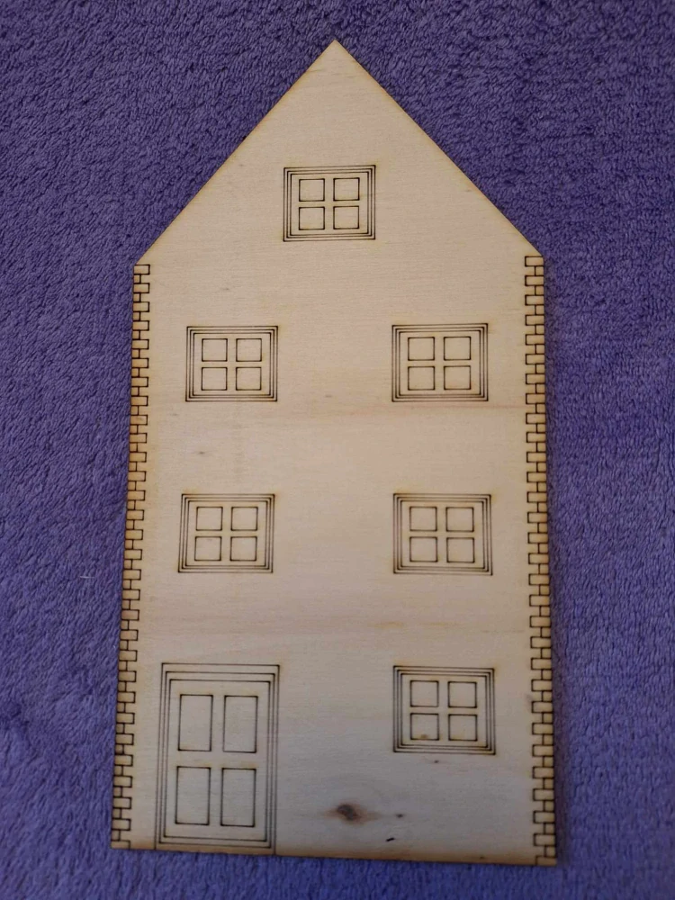 Dekoračný DOMČEK typ6, veľkosť 21,5x11cm, je určený na dalšie tvorenie a dekorovanie. 3mm preglejka
