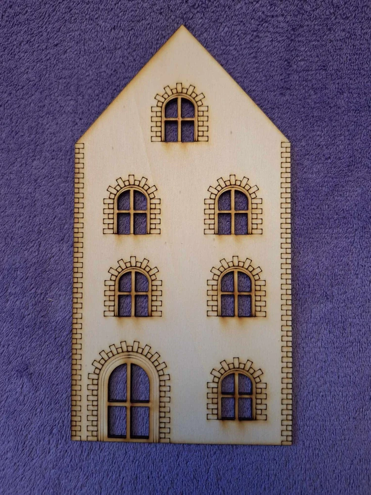 Dekoračný DOMČEK typ7, veľkosť 21,5x11cm, je určený na dalšie tvorenie a dekorovanie. 3mm preglejka