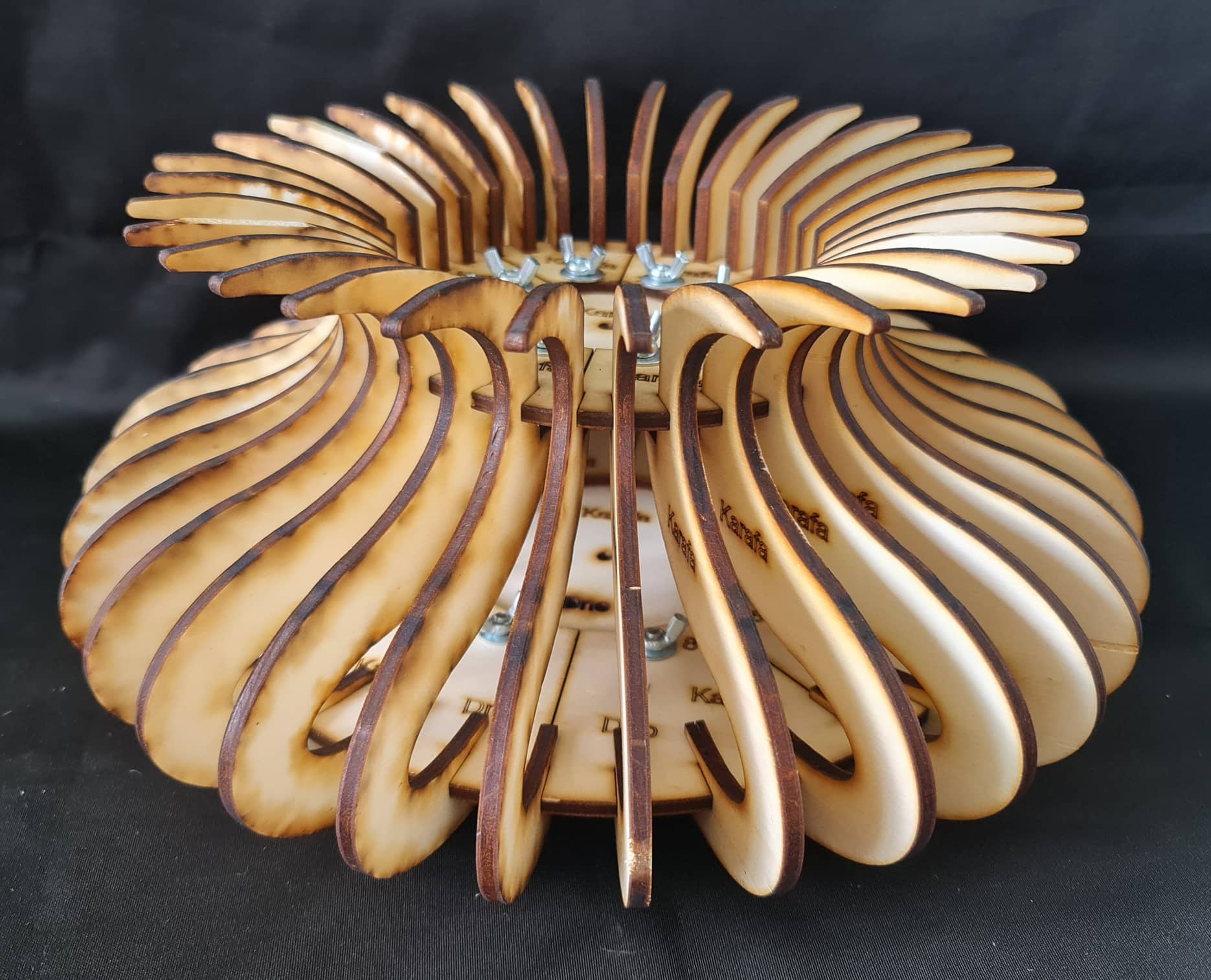 Forma na pletenie Karafa, má základý kruhový tvar o priemere 25cm. Šírka v strede lamely je 34cm. Hrdlo karafy má šírku 15cm.Táto forma môže slúžiť ako krásna dekorácia so živými kvetmi. Výška formy v najvyšom bode je 20cm .