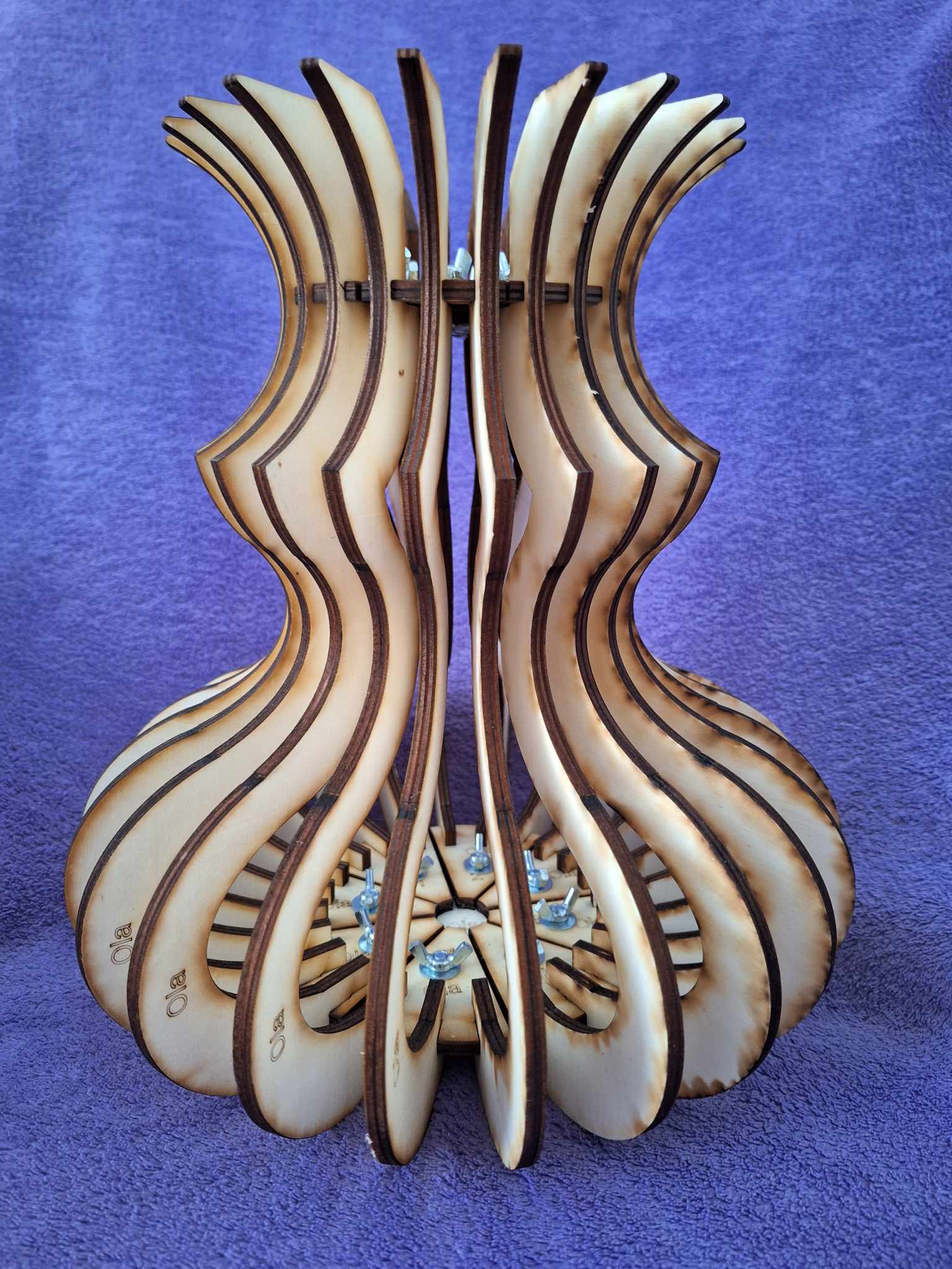 Forma na pletenie OLA, má základý kruhový tvar o priemere 14cm. Šírka lamely v najširšom bode je 28cm, v hornej časti 17cm odtial prechádza do hrdla o šírke 18cm. Táto forma môže slúžiť ako krásna dekorácia so živými kvetmi, umelými dekoráciami. Výška formy v najvyšom bode je 29cm .