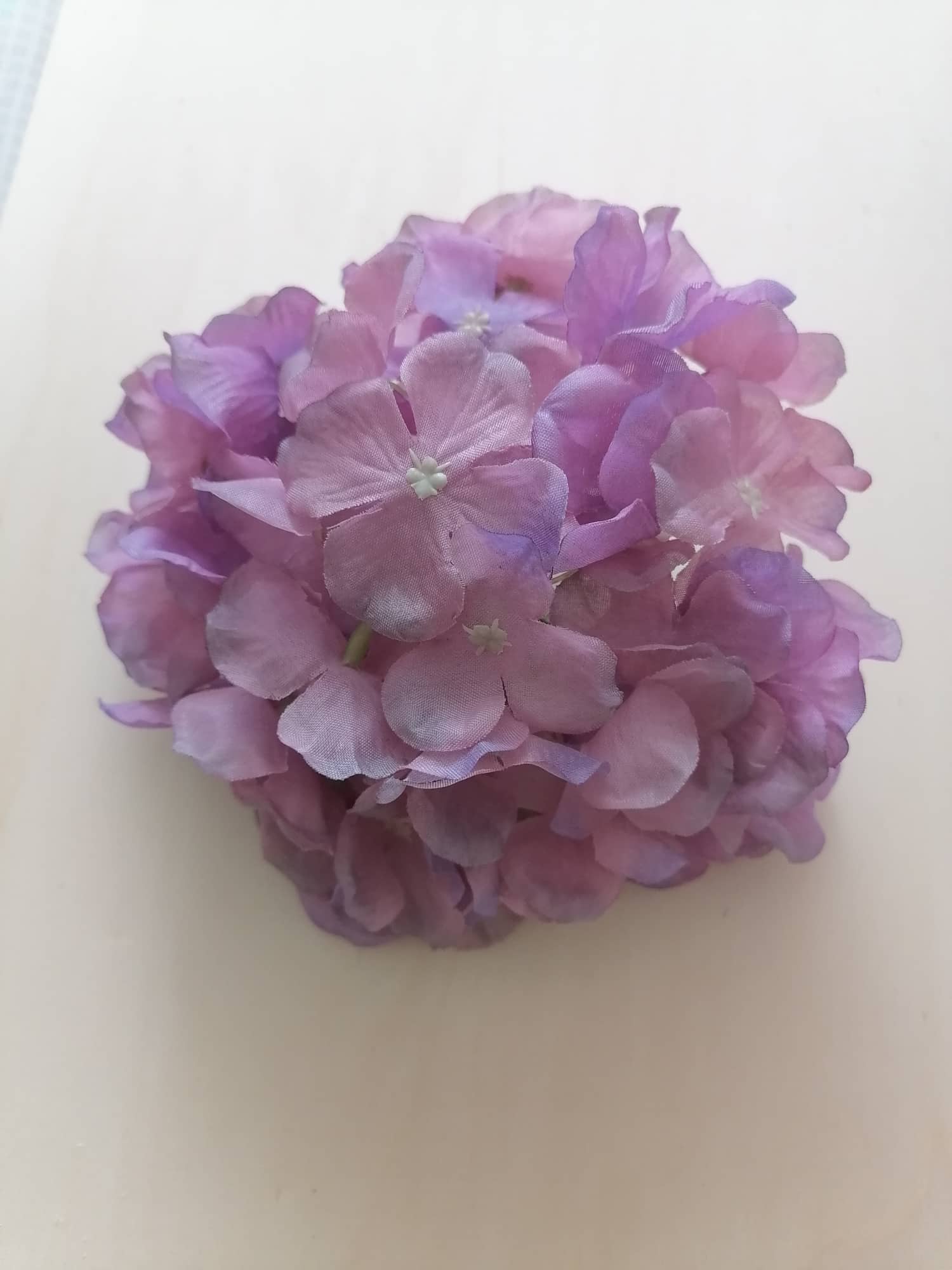 Kvet hortenzie, veľký a dekoratívny. Kvalitné spracovanie a materiál (satén). Priemer 15-16 cm, výška 8 cm.