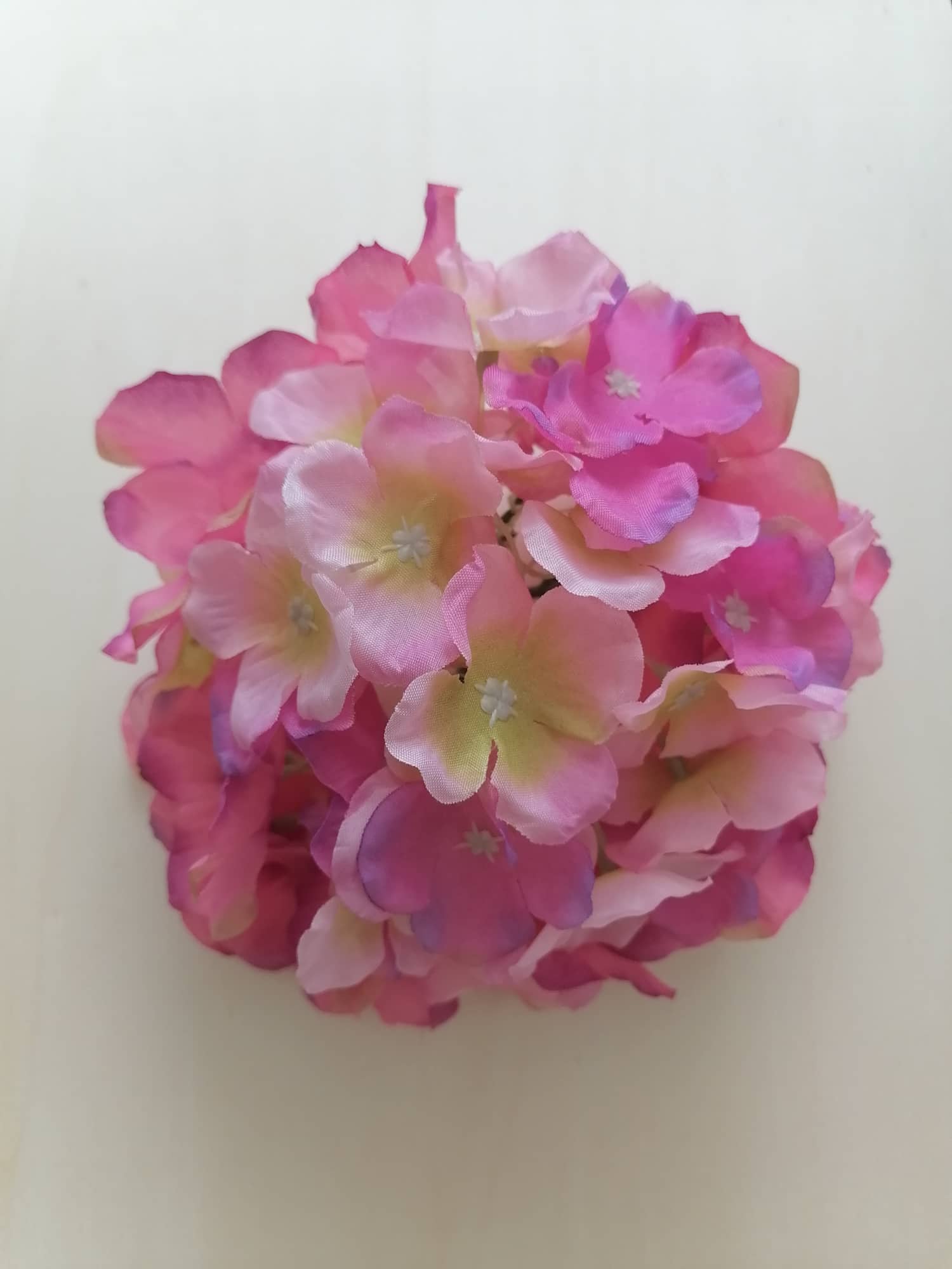 Kvet hortenzie, veľký a dekoratívny. Kvalitné spracovanie a materiál (satén). Priemer 15-16 cm, výška 8 cm.