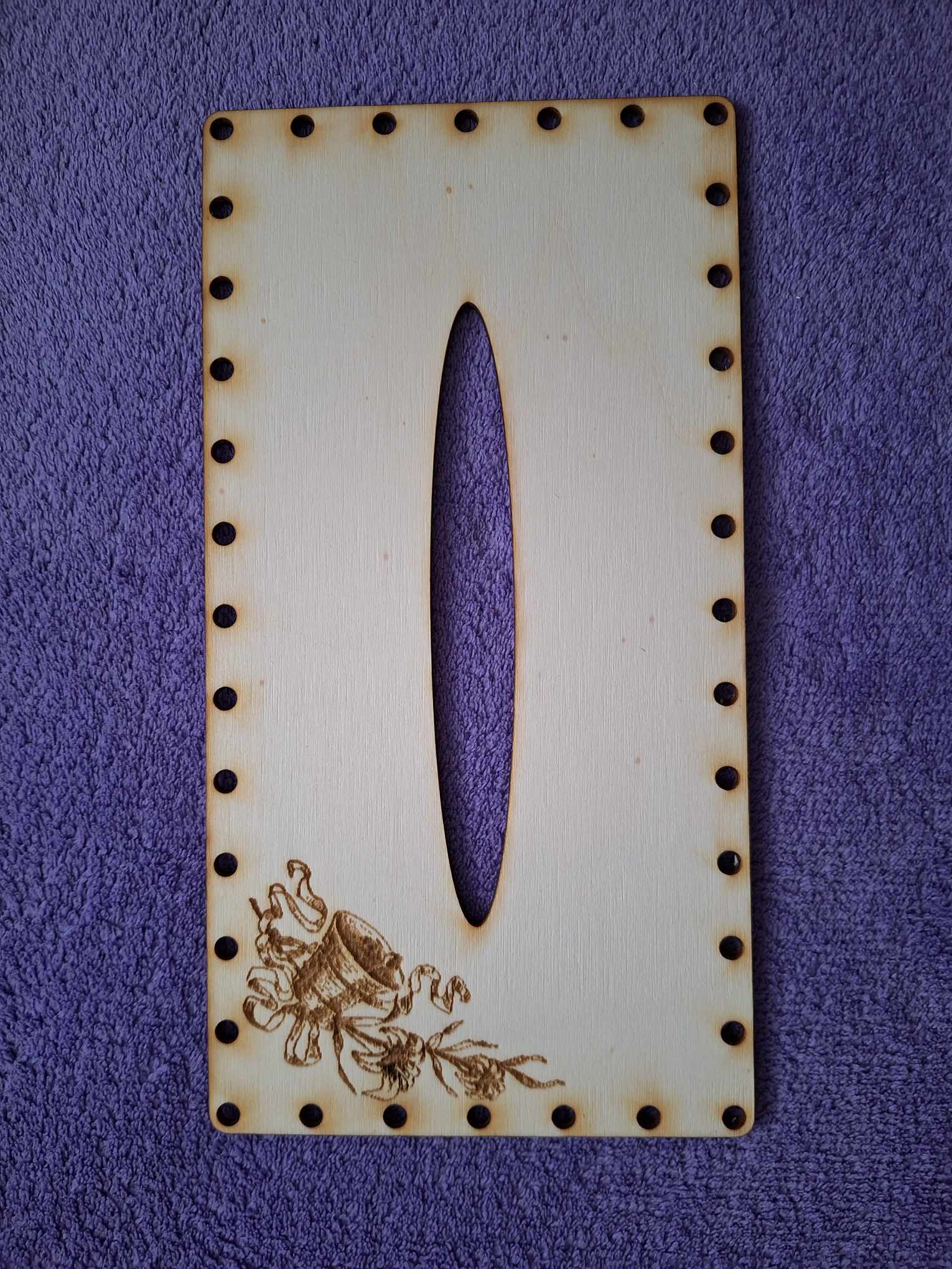 Kapesníkovník na opletanie gravírovaný - obdľžnik 25x13cm. Na požiadanie, vieme vyrobiť aj bez dierok a podľa Vašej formy vieme upraviť aj rozmer základu.