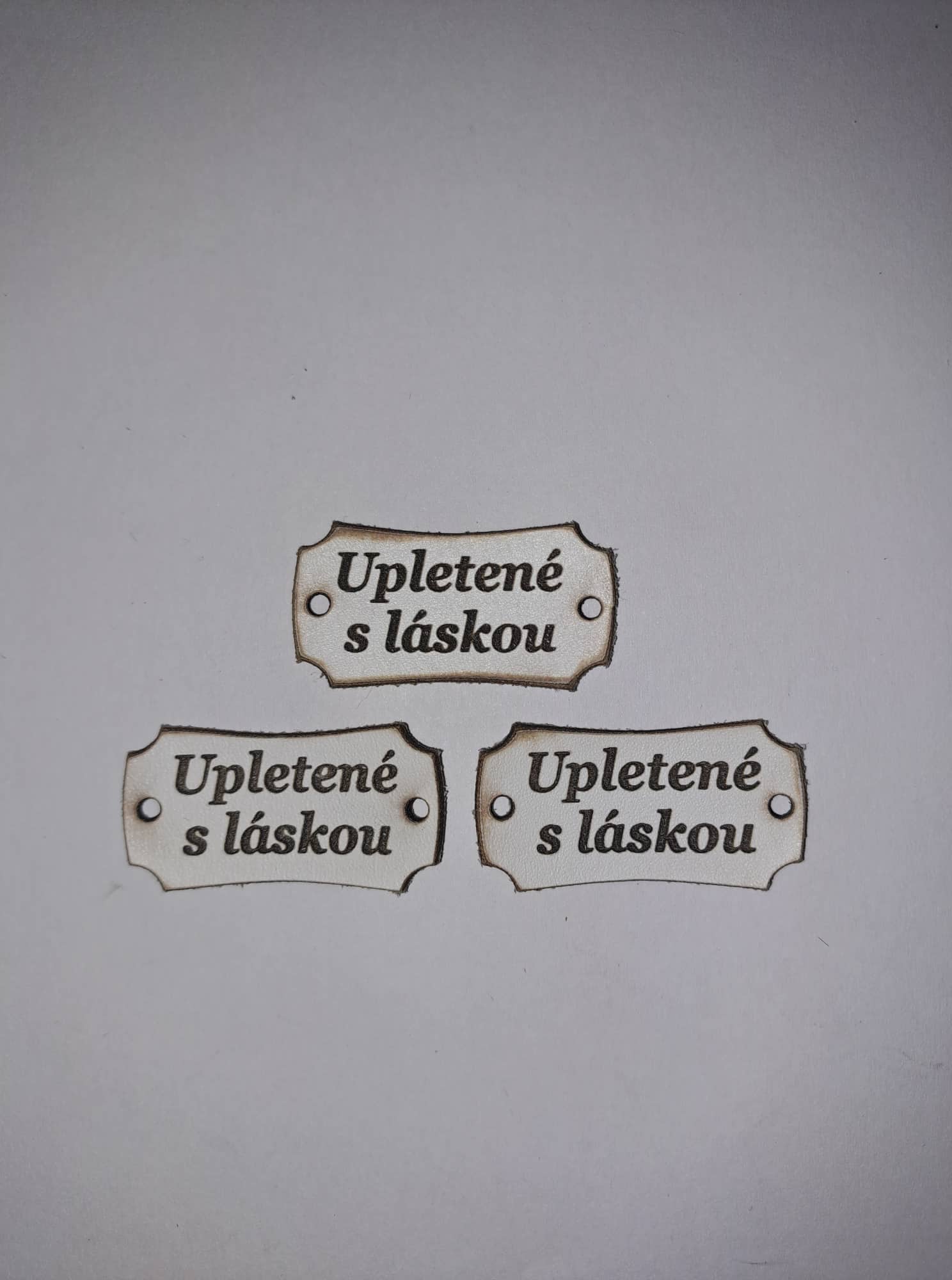 - Kožený štítok 35x18 - Upletené s láskou - biely