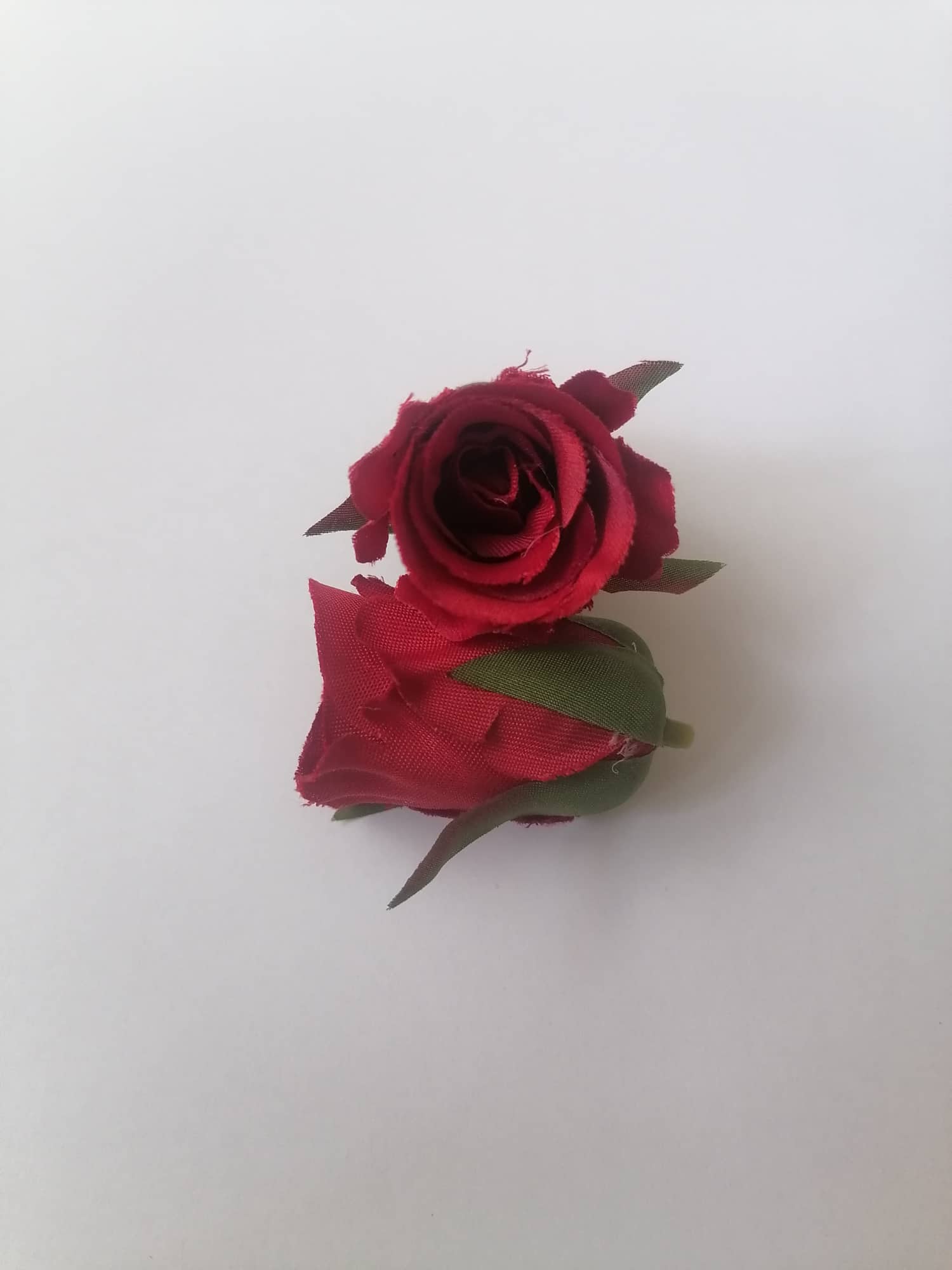 Krásny kvet ruže, vyrobený zo saténu. Výška kvetu je 4 cm, priemer je 2,5 cm.