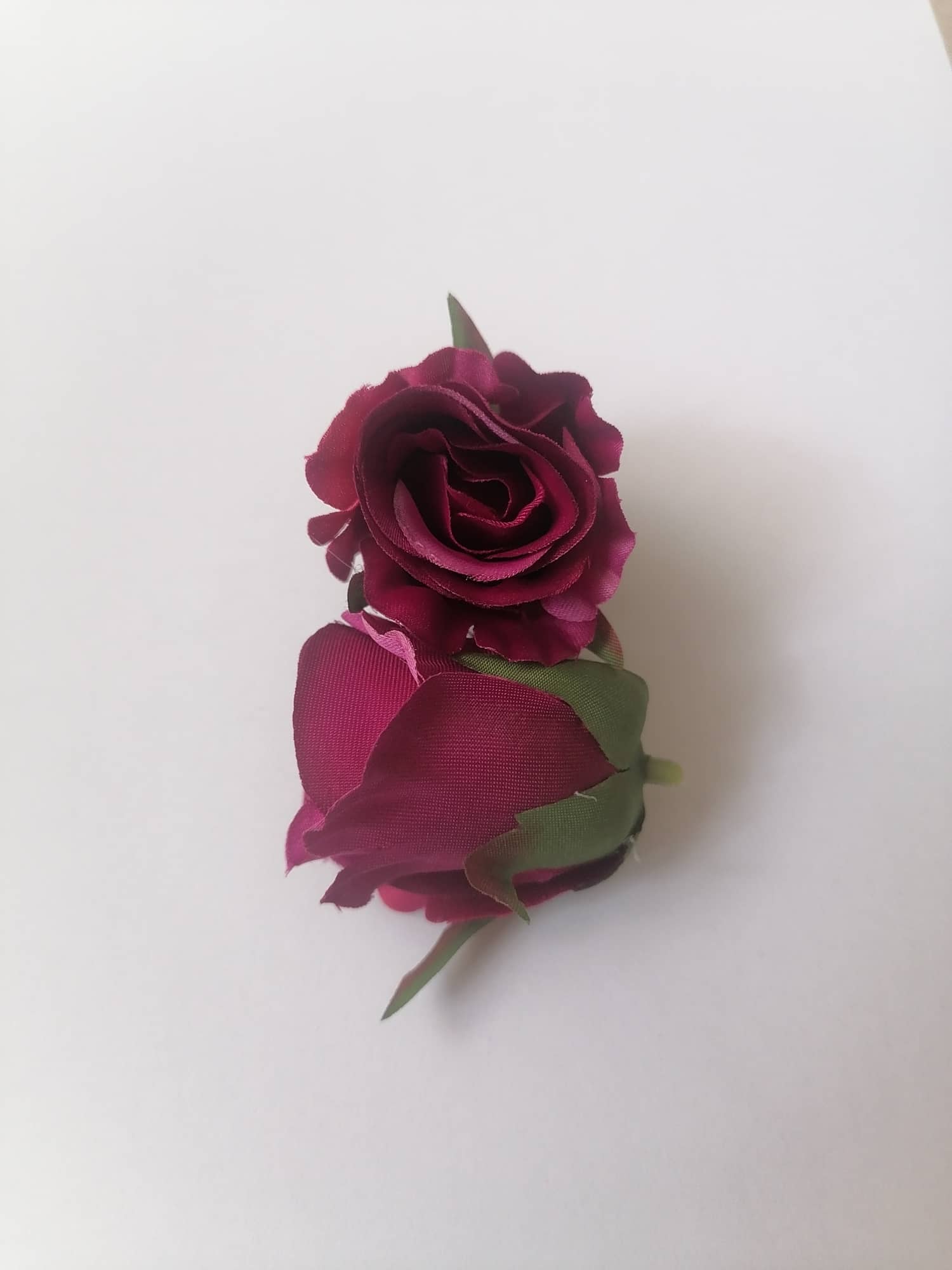 Krásny kvet ruže, vyrobený zo saténu. Výška kvetu je 4 cm, priemer je 2,5 cm.