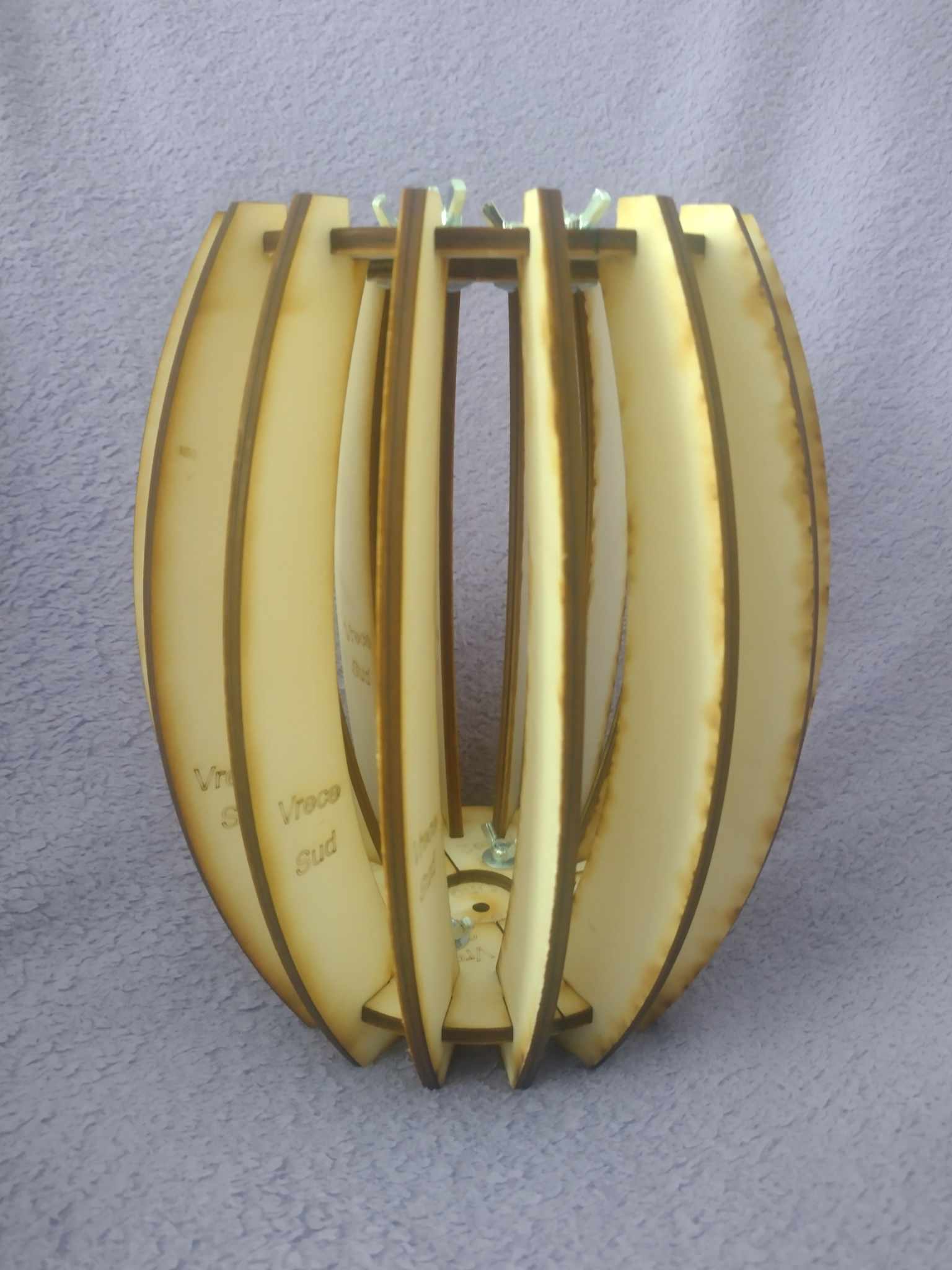 Výmenné lamely na formu VRECE 1a2. Výmenné lamely sú vyrobené tak, aby ste dosiahli pekný tvar súdka alebo buclatej vázy. Na obrázku máte vyfotené lamely na forme, aby ste mali predstavu ako vyzerá tvar SÚDKU alebo VÁZY s výmennými lamelami. Súdok na základných doskách VRECE 1 je v najširšom bode široký 18cm. Súdok na základných doskách VRECE 2 je v najširšom bode široký 19,5cm Základné dosky niesú v ponuke.