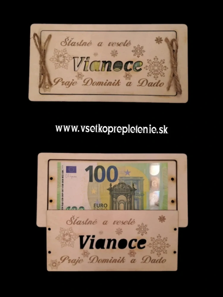 Krásna dekoračná tabuľka pre darovanie peňazí pod stromček. Rozmer tabuľky je 20x10cm. Dodávaná je v surovom stave pre možnosť si doma dodekorovať podla svojich predstáv.