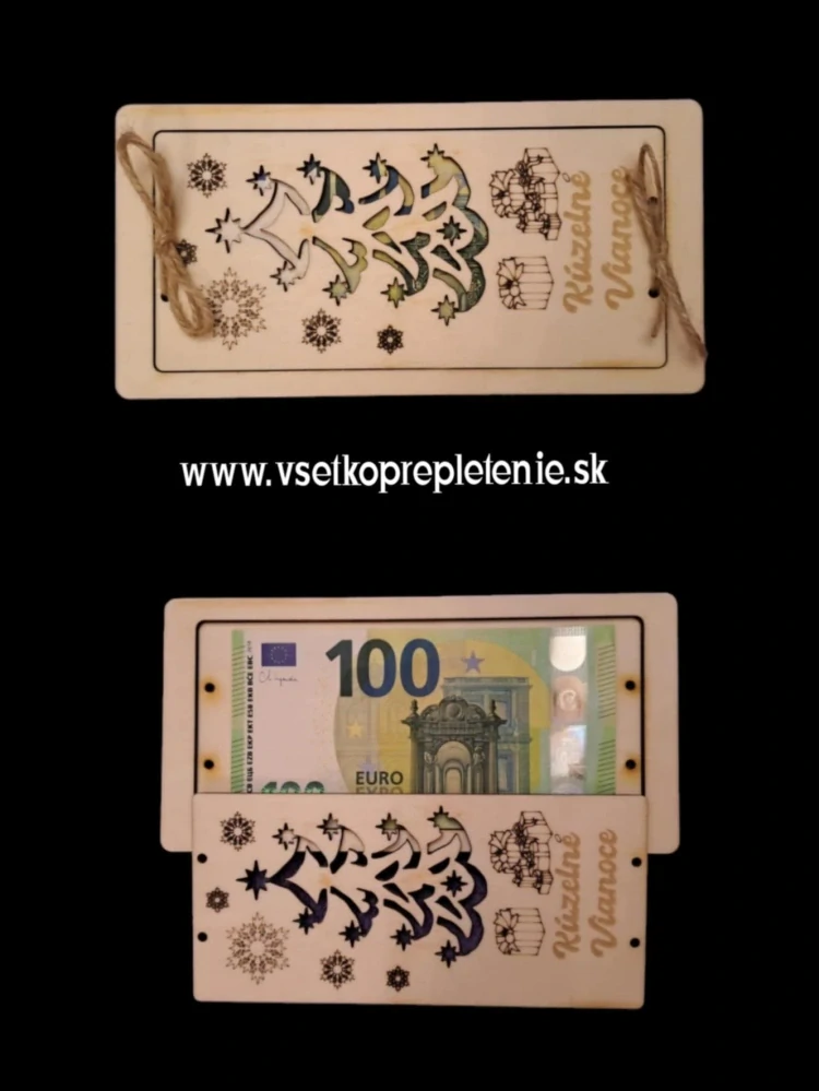 Krásna dekoračná tabuľka pre darovanie peňazí pod stromček. Rozmer tabuľky je 20x10cm. Dodávaná je v surovom stave pre možnosť si doma dodekorovať podla svojich predstáv.