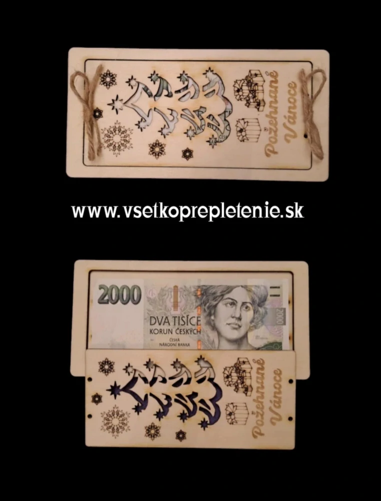 Krásna dekoračná tabuľka pre darovanie peňazí pod stromček. Rozmer tabuľky je 20x10cm. Dodávaná je v surovom stave pre možnosť si doma dodekorovať podla svojich predstáv.