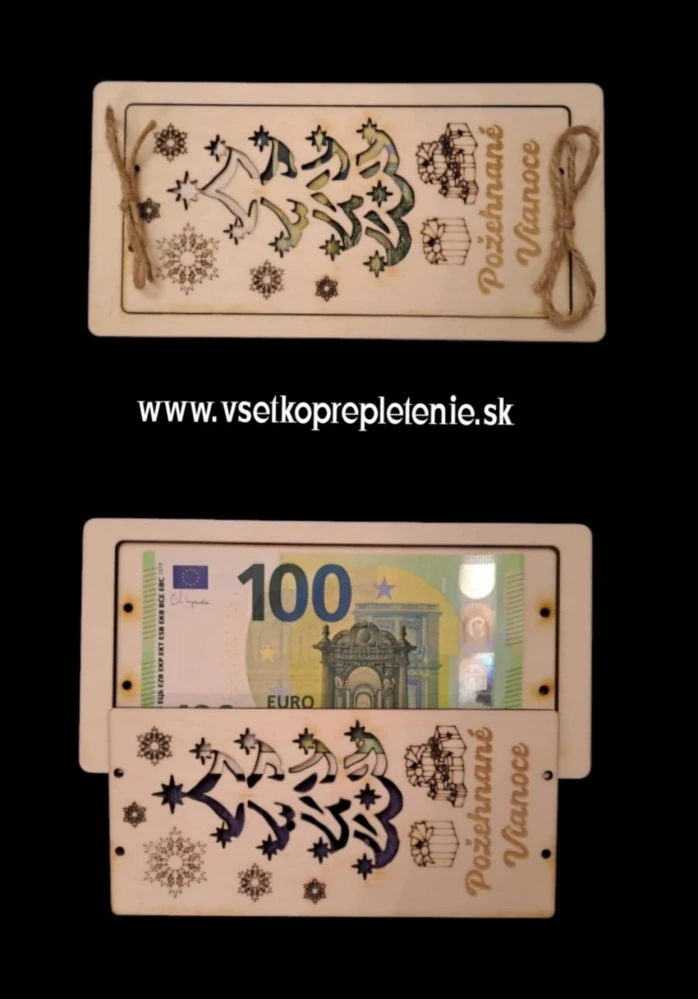 Krásna dekoračná tabuľka pre darovanie peňazí pod stromček. Rozmer tabuľky je 20x10cm. Dodávaná je v surovom stave pre možnosť si doma dodekorovať podla svojich predstáv.