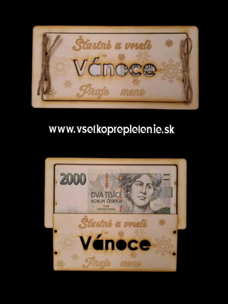 Krásna dekoračná tabuľka pre darovanie peňazí pod stromček. Rozmer tabuľky je 20x10cm. Dodávaná je v surovom stave pre možnosť si doma dodekorovať podla svojich predstáv.