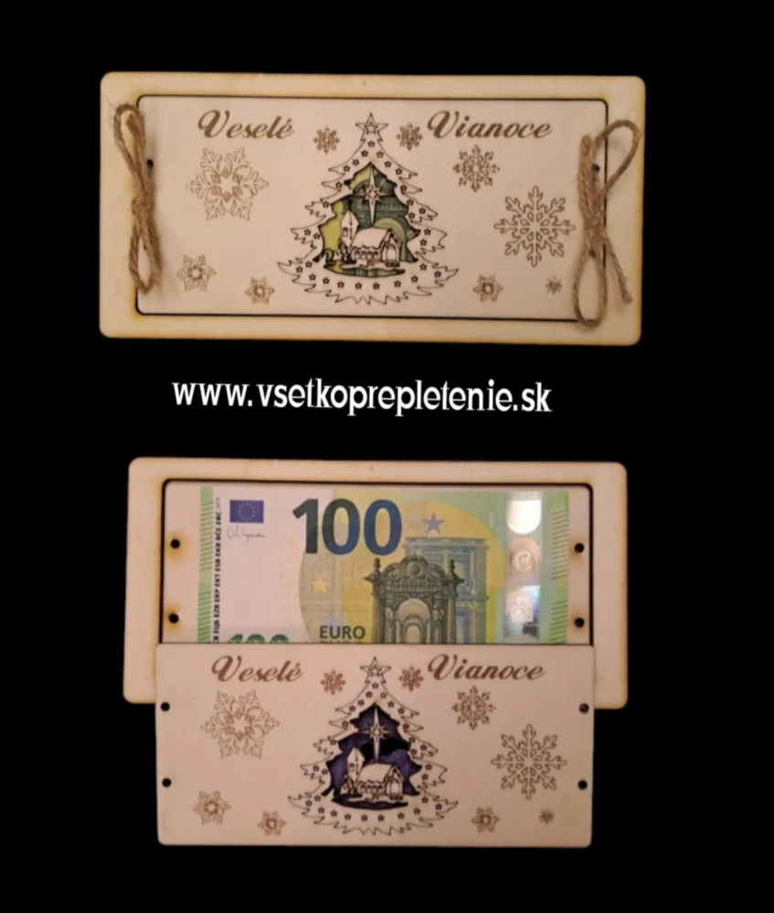 Krásna dekoračná tabuľka pre darovanie peňazí pod stromček. Rozmer tabuľky je 20x10cm. Dodávaná je v surovom stave pre možnosť si doma dodekorovať podla svojich predstáv.
