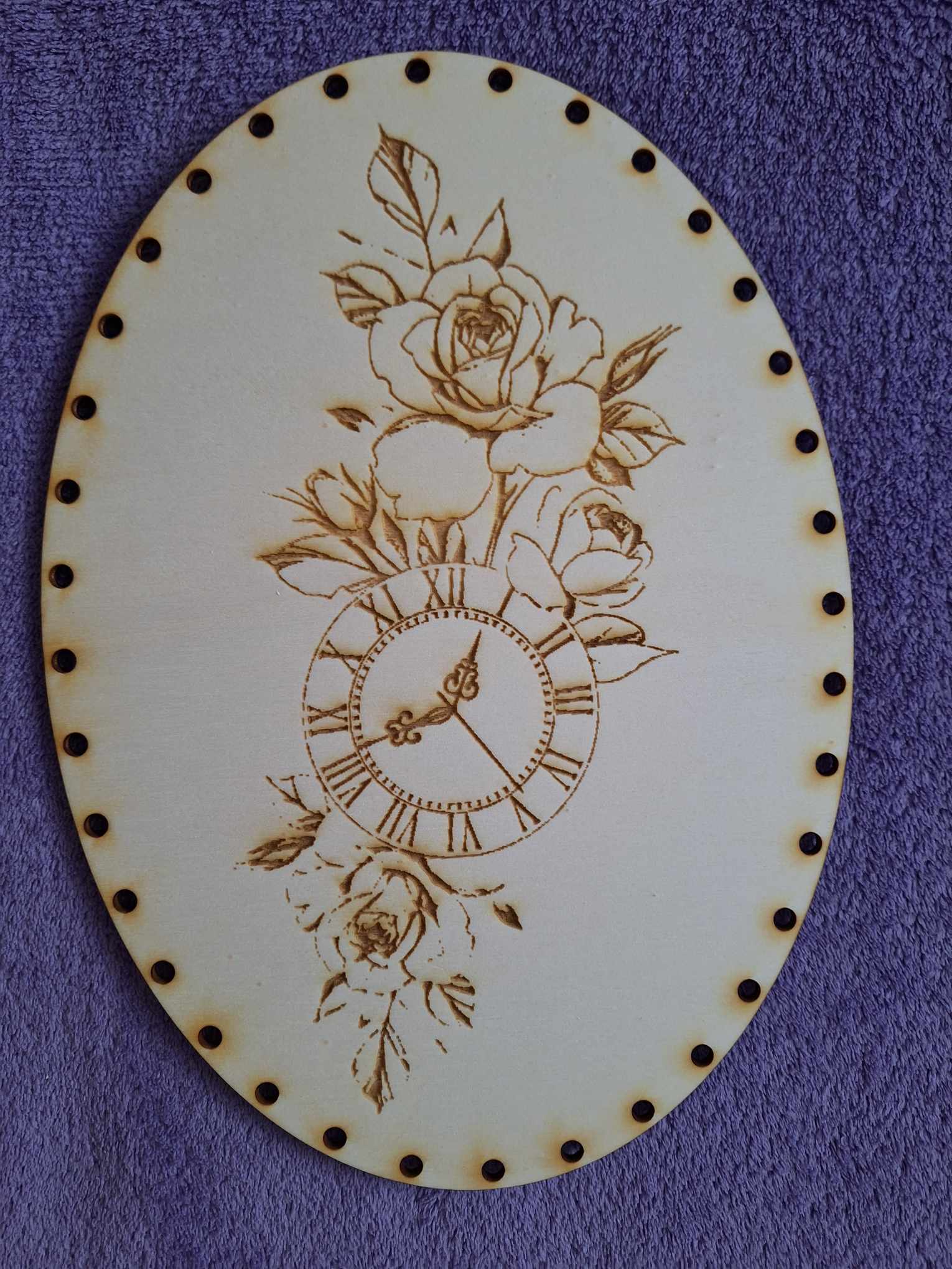 Preglejkové dno gravírované elipsa 3mm - 23x17cm hodiny s ružami