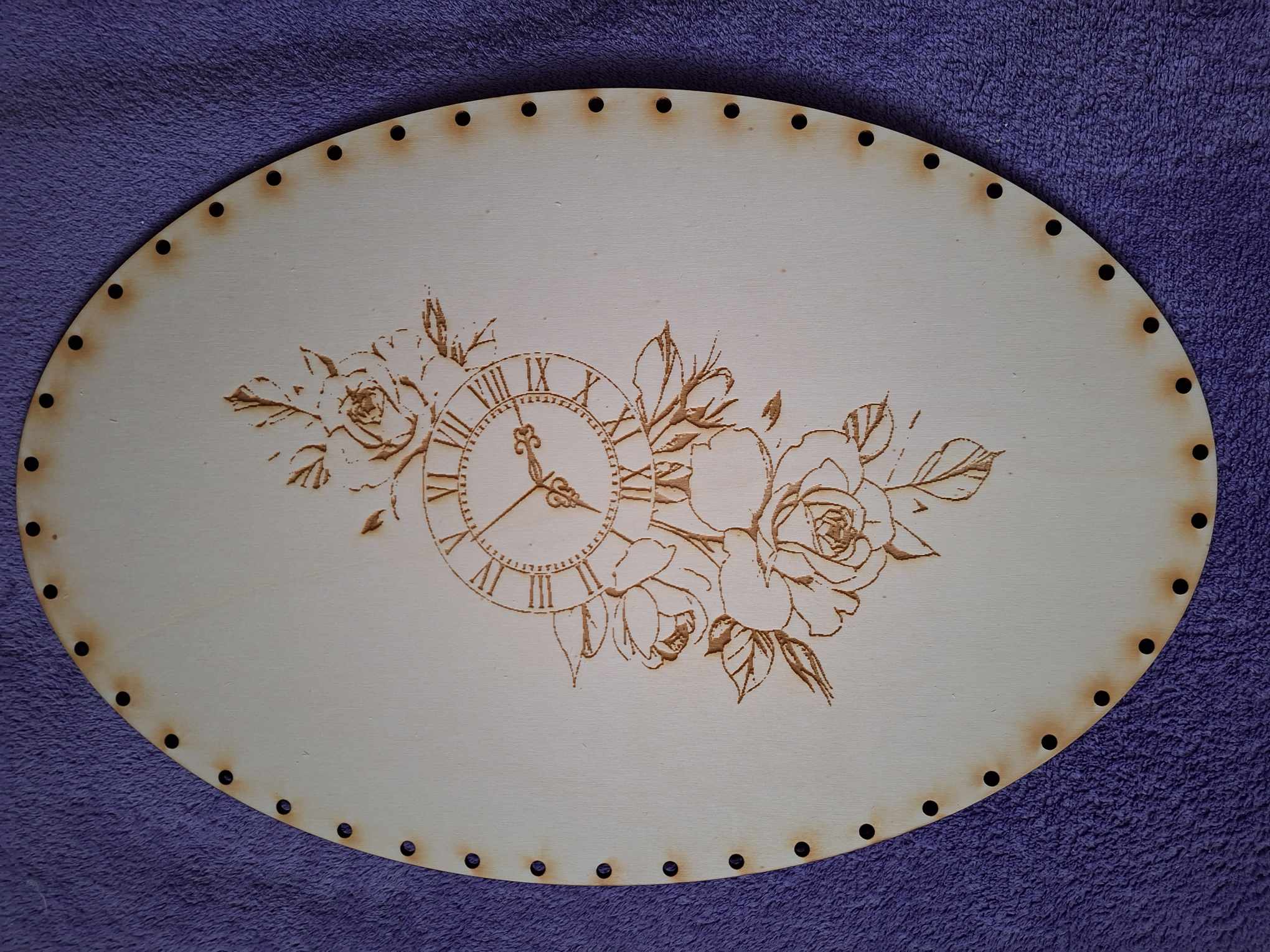 Preglejkové dno gravírované elipsa 4mm - 33x25cm Hodiny s kvetmi