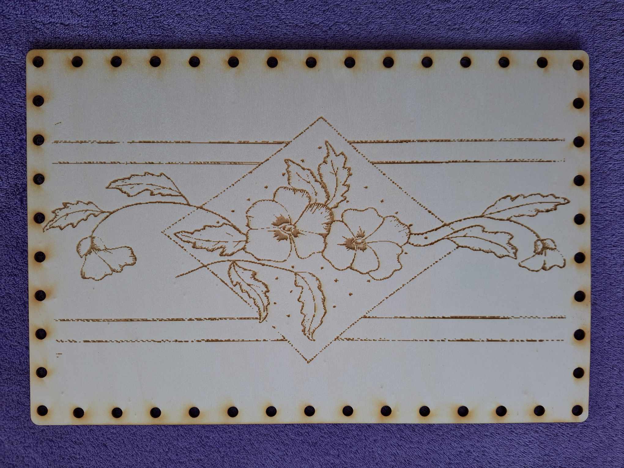 Preglejkové dno na opletanie gravírované obdĺžnik 3mm - 25x15cm Kvety