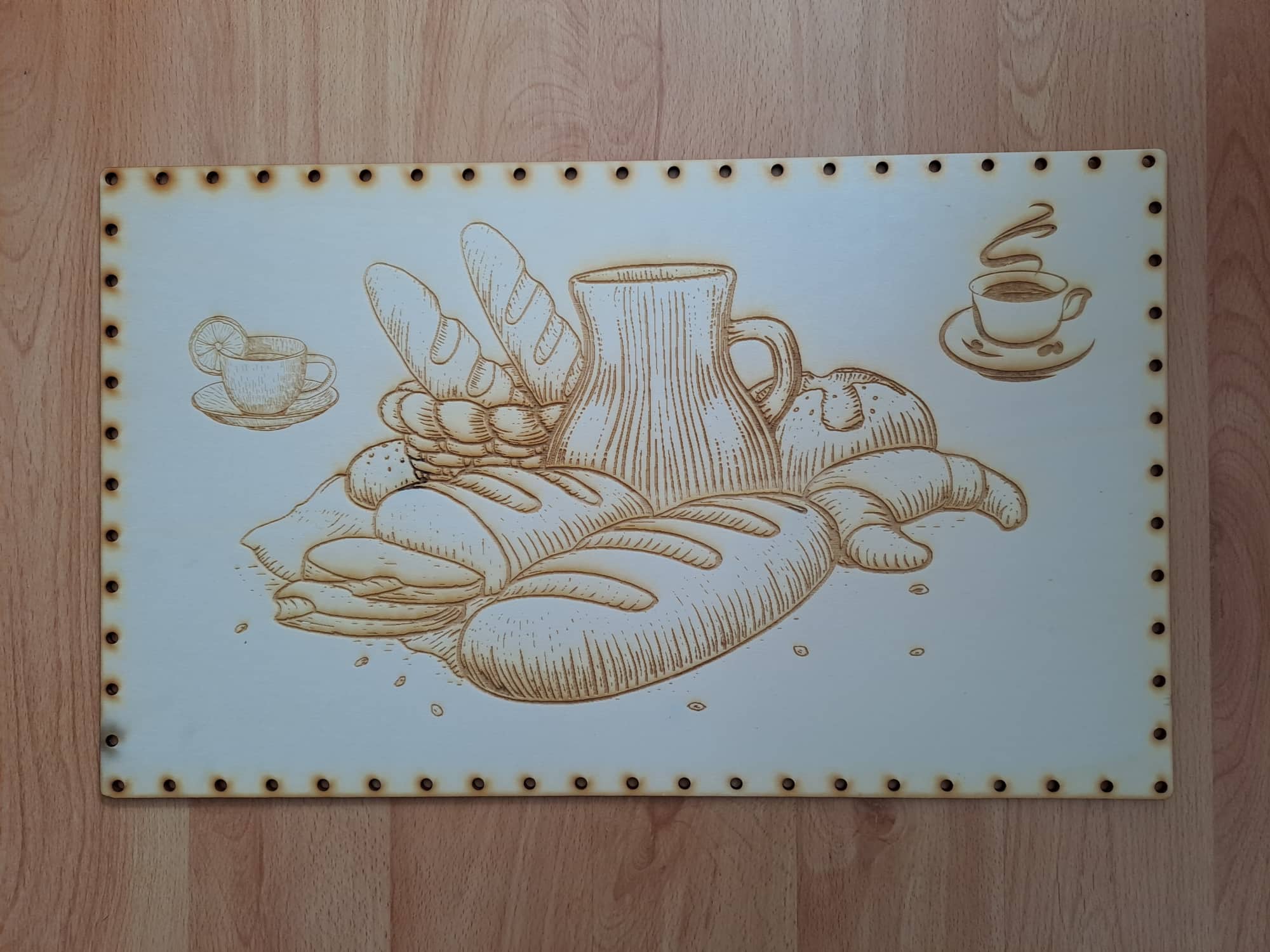 Preglejkové dno na opletanie gravírované obdĺžnik 4mm - 40x30cm Raňajky1